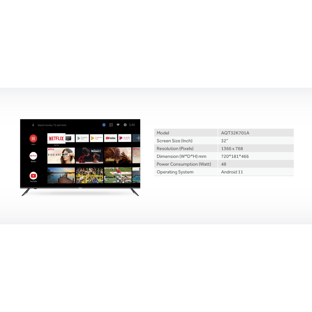 AQUA LED qled TV 32 Inci Google Android Smart TV dengan Teknologi Cerdas AI, Bluetooth, dan Chromecast Built-in untuk Pengalaman Menonton yang Lebih Baik
