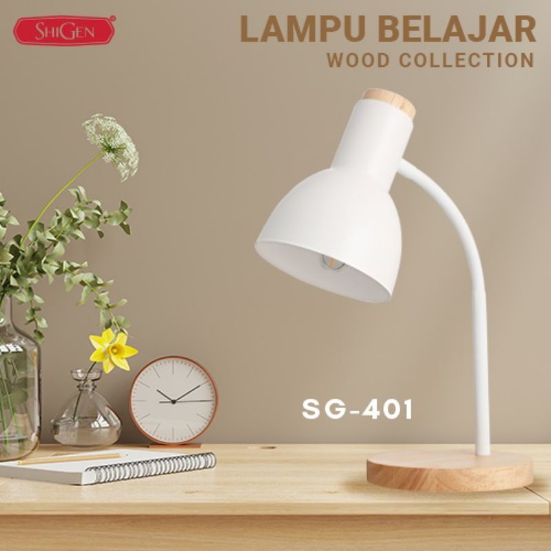 Lampu Baca Meja Belajar / Lampu Kerja Arsitek E27 Fleksibel Model Klasik Nordic Wood Collection SHIGEN SG-401