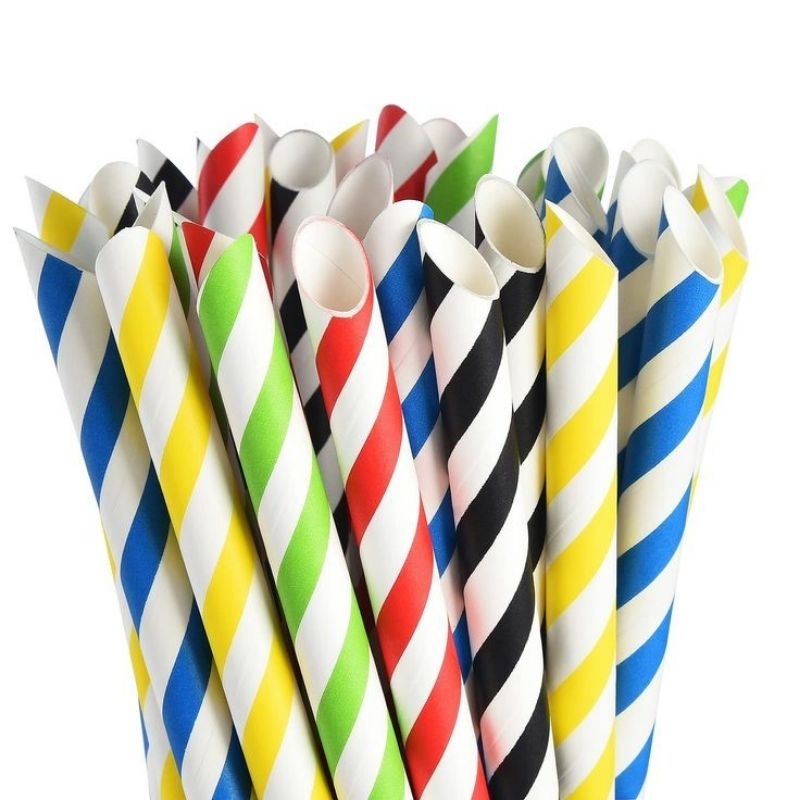 Sedotan Kertas bubble tea Boba Paper Straw stripe merah putih biru putih isi 50