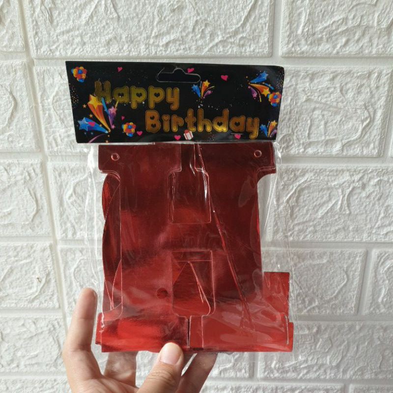 Banner HBD Bunting Flag Happy Birthday ulang tahun backdrop + pita gantung Merah Gold Metalik
