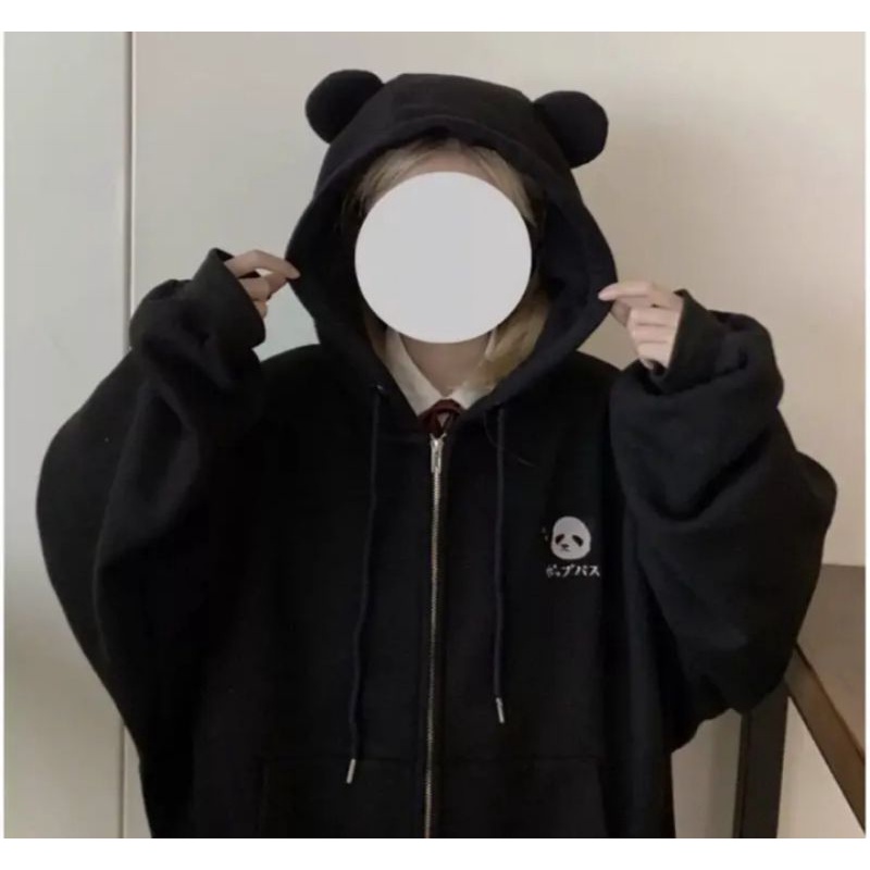 NURITARI ZIPPER PANDA CUTE JAKET WANITA BERTOPI BORDIR (PH)
