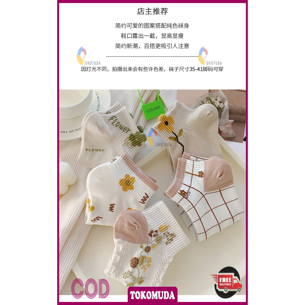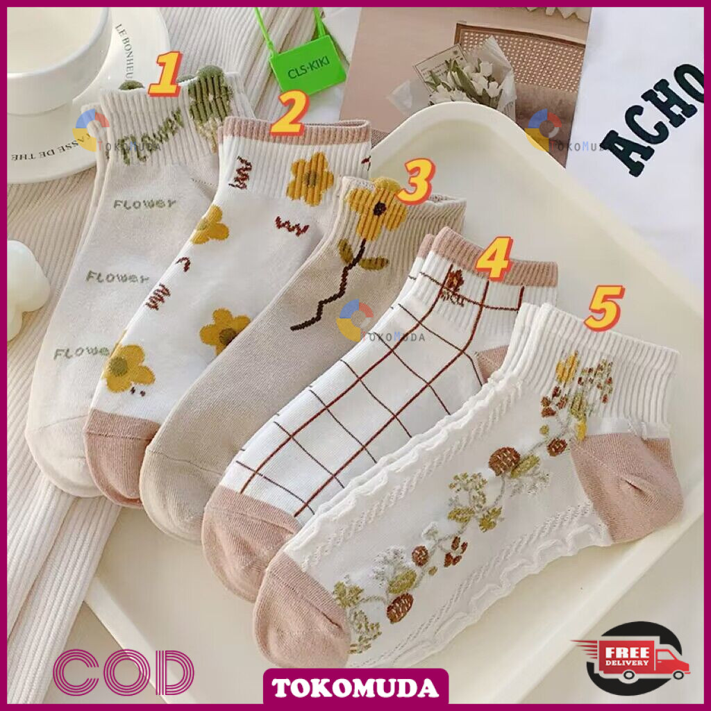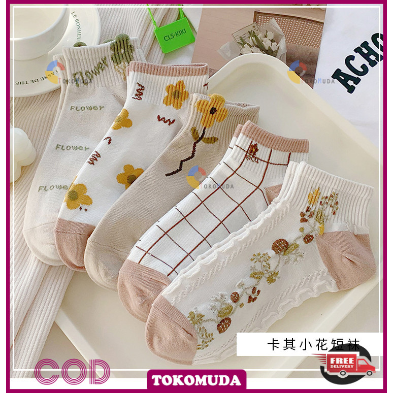 Toko Muda Kaos kaki Wanita lucu style korea Kaos Kaki Wanita Pendek Semata Kaki Motif Bunga