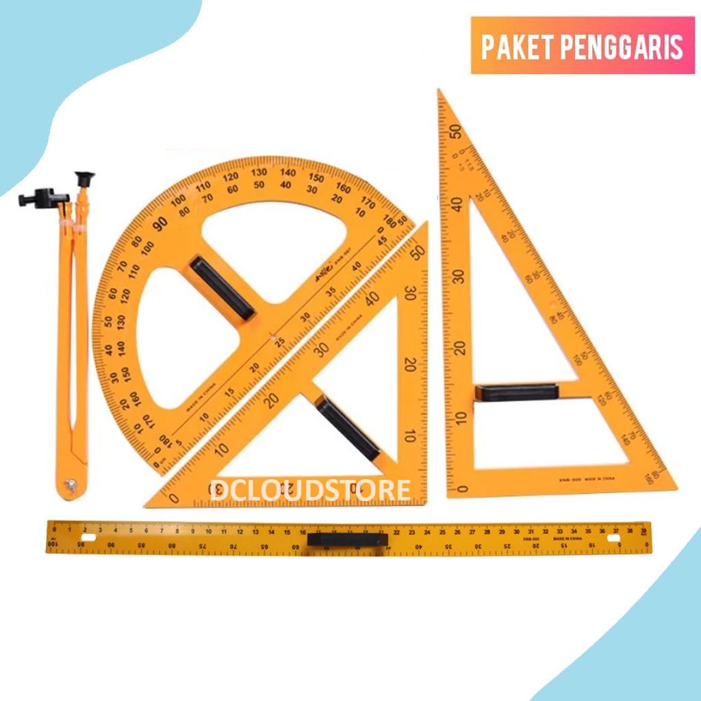 Paket Penggaris Guru Sekolah Jangka Busur Segitiga Siku Lurus Besar