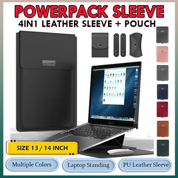 Handbag Dell Latitude 13 13.3" inch aptop Sleeve Powerpack Case Pouch Leather Premium 4in1 Sleeve Bag Tas Kulit Stand