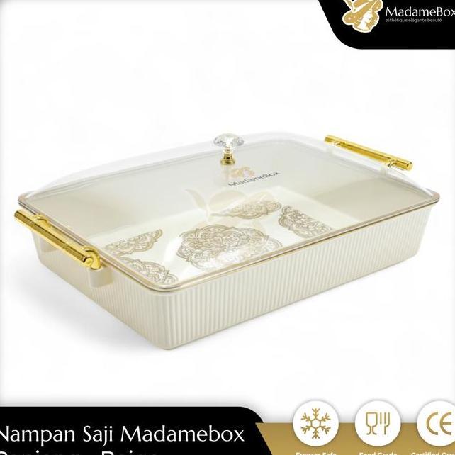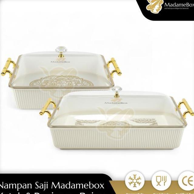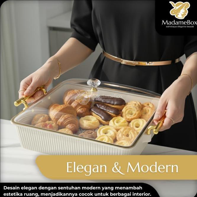 Madamebox Nampan Saji Kue 4 6 Ml Dengan Tutup Kristal Handle Emas Tray Estetik Warna Bee Elegan Untuk Lebaran Natal Imlek Hidangan TamuKueBuahSna Paket Combo 2 Pcs