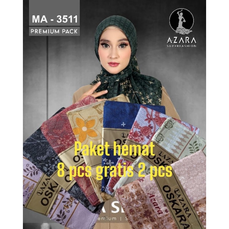 (PROMO) paket hemat usaha motif azara 8 + pcs gratis 2 pcs/grosir hijab segi empat/grosir jilbab motif j/jilbab seragaman