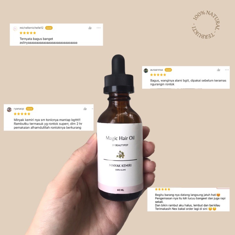 MINYAK KEMIRI PENYUBUR RAMBUT, MENEBALKAN ALIS. Penumbuh Rambut 100% Alami