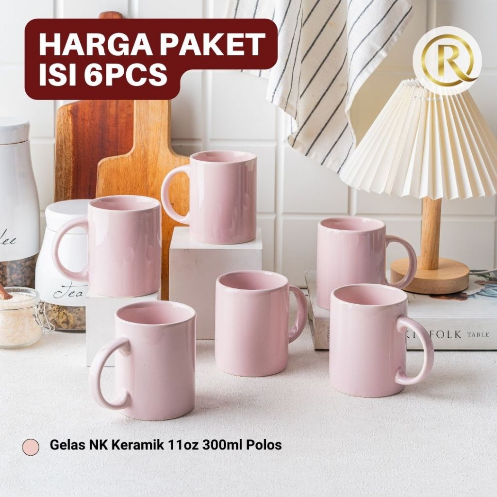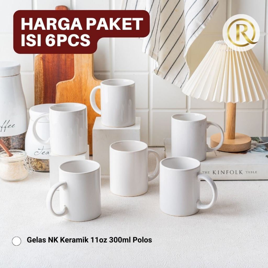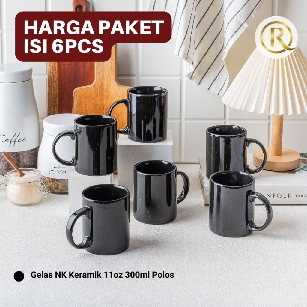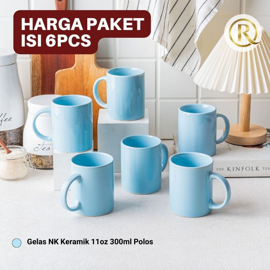 Paket Isi 6 pcs Gelas Mug Keramik 11oz 300ml Polos