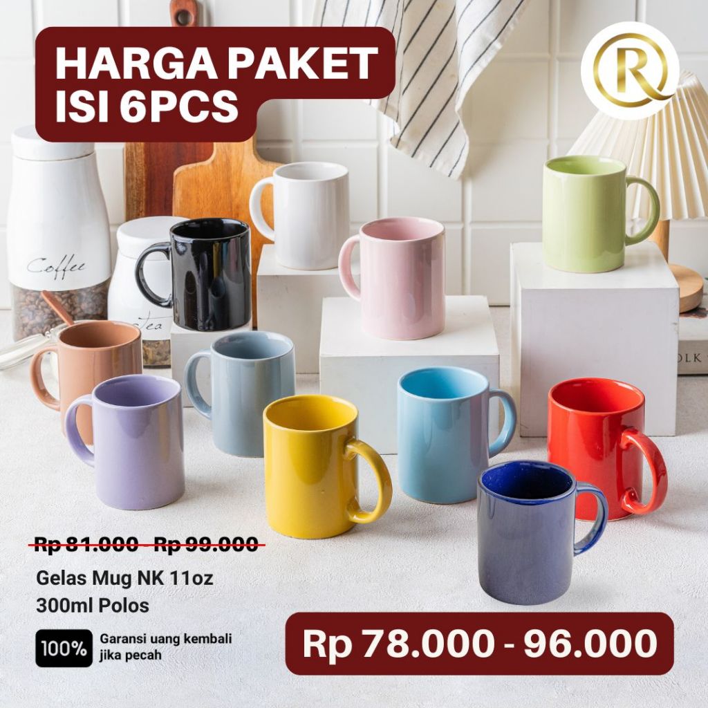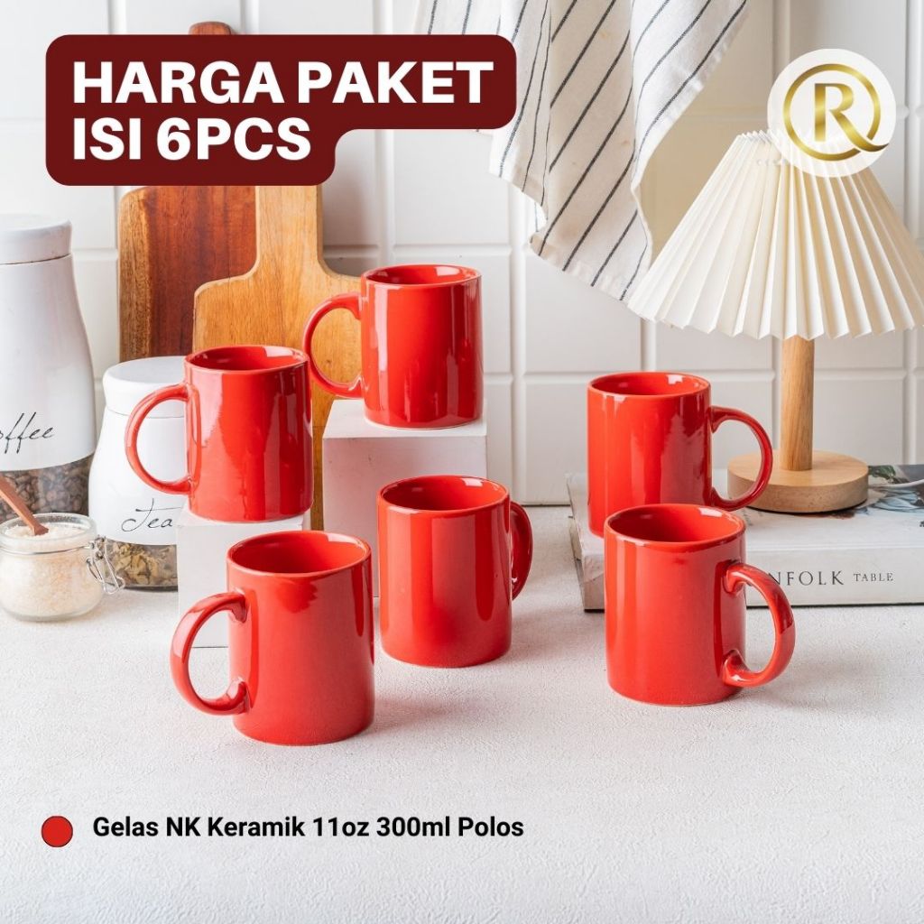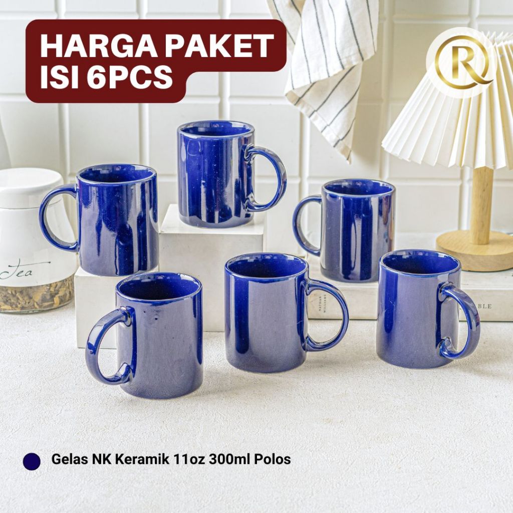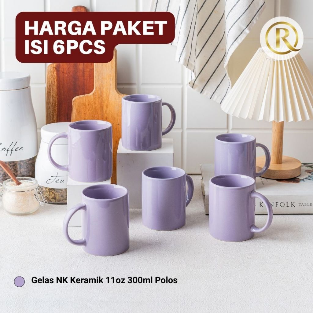 Paket Isi 6 pcs Gelas Mug Keramik 11oz 300ml Polos