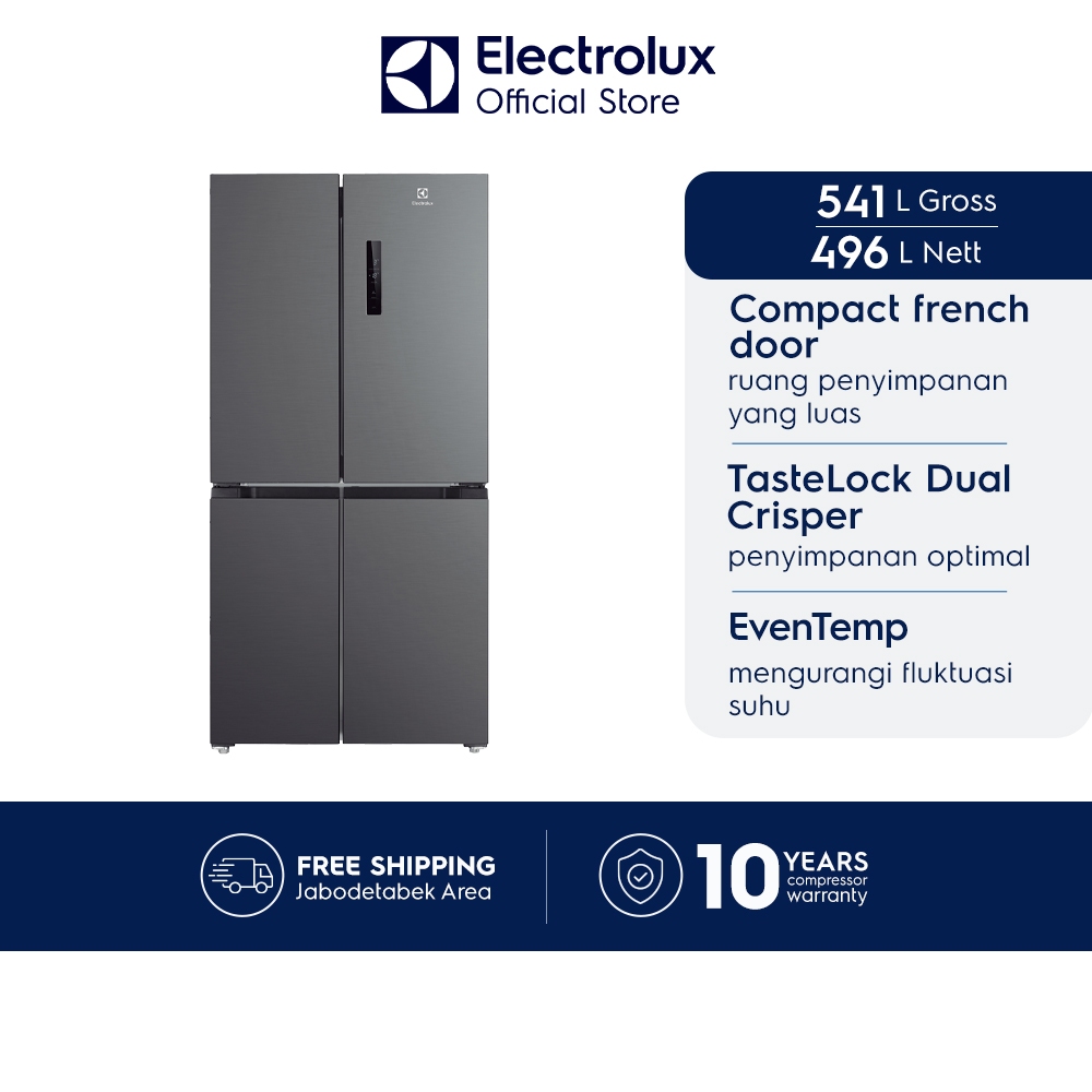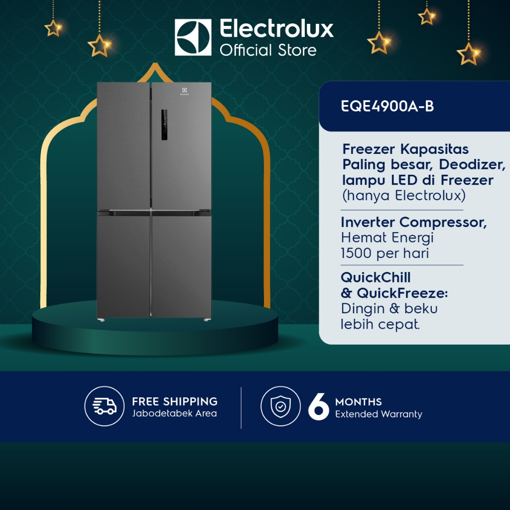 Electrolux Kulkas 4 Pintu EQE4900A-B 541L TasteLock - Dual Crisper - EvenTemp - QuickChill - QuickFreeze - Kompresor Inverter - Warna Baja Hitam Garansi 1 Tahun 10 Tahun Kompresor / EQE4900 A-B / EQE 4900 A-B