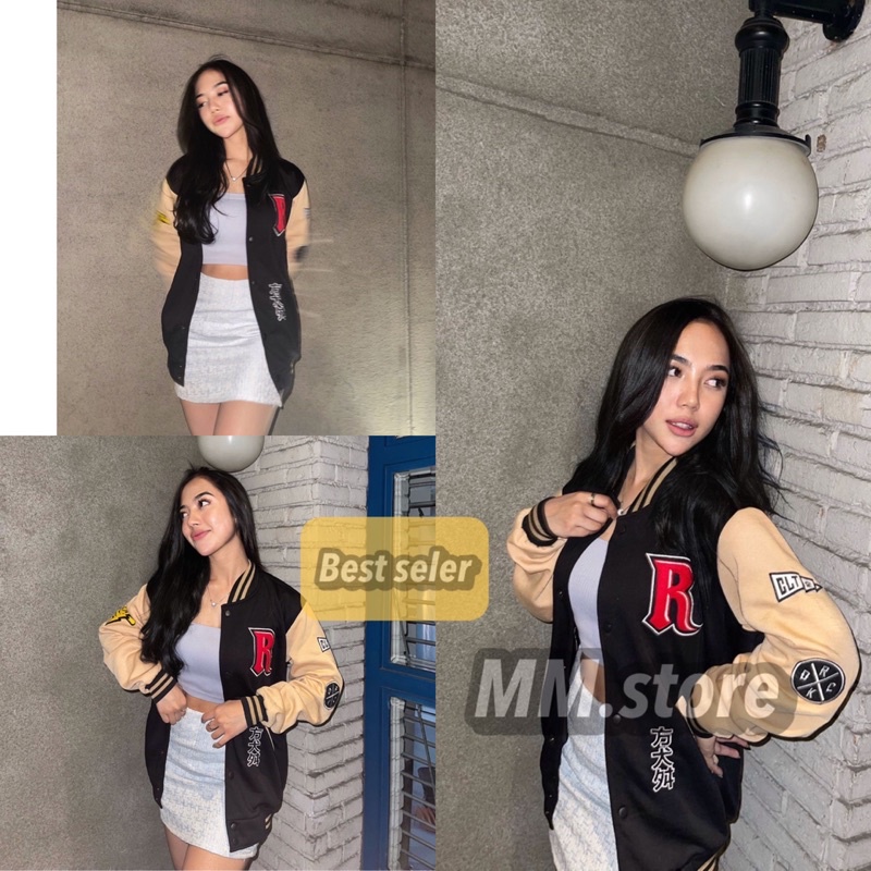 jaket varcity vintage full bordiran flecee premium bisa dipakai wanita dan pria