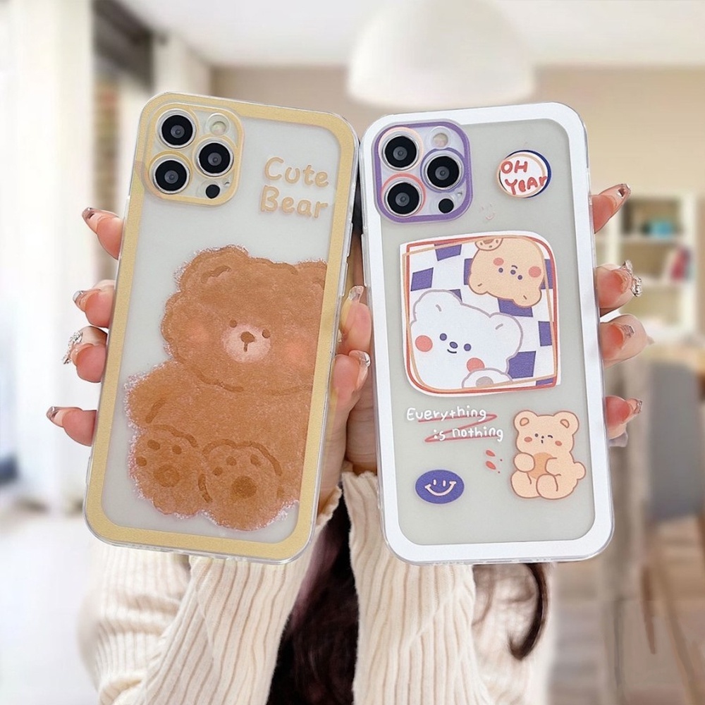 Case Hp Vivo T1 5G Y55 5G Y75 5G Silicon Case Cute Bear Smile Softcase Boneka Beruang Coklat Transparan All Varian Hp