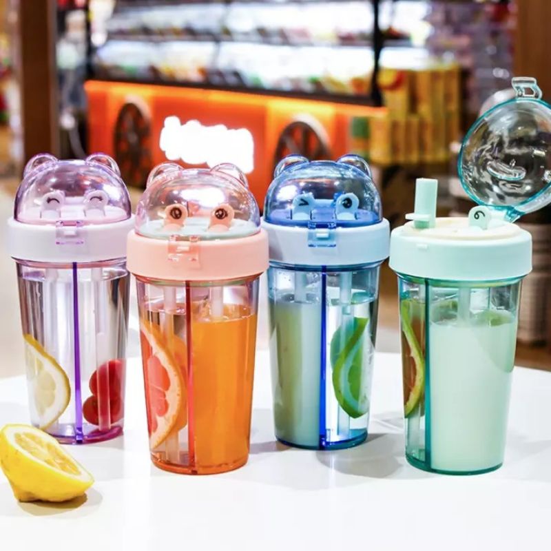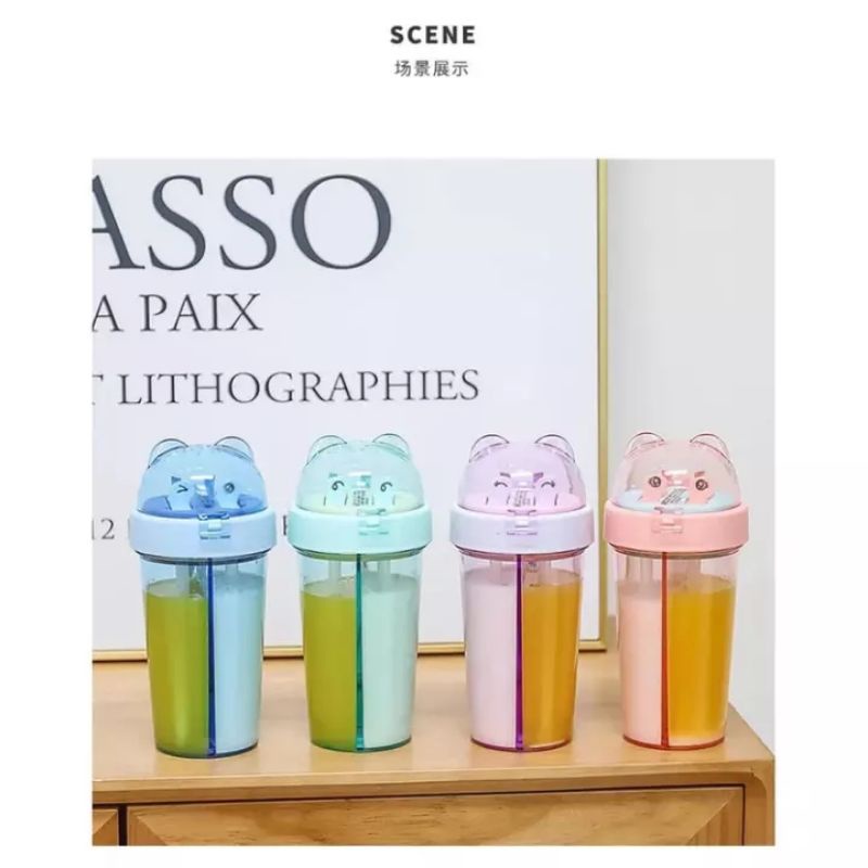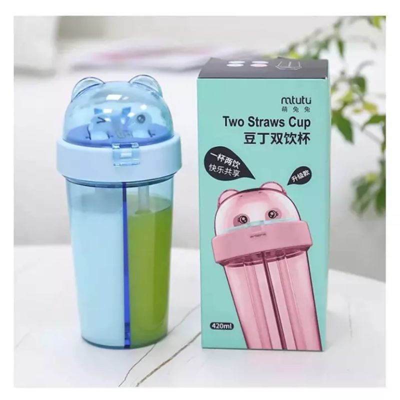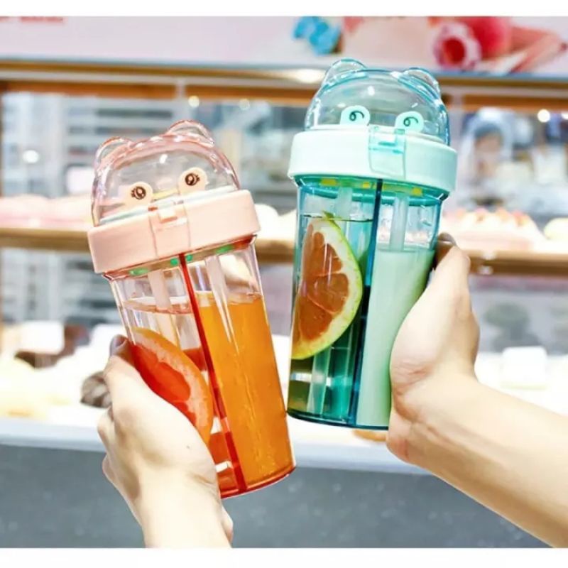 BOTOL MINUM / TEMPAT MINUM ANAK DUET 2 IN 1 + STIKER COUPLE 420 ML LUCU COCOK UNTUK KADO