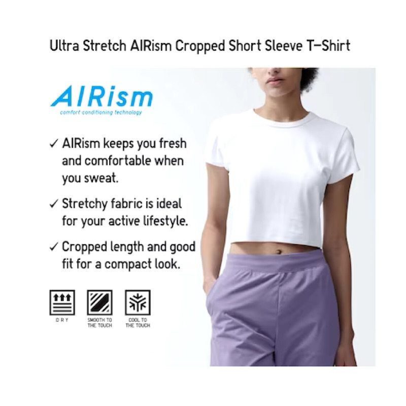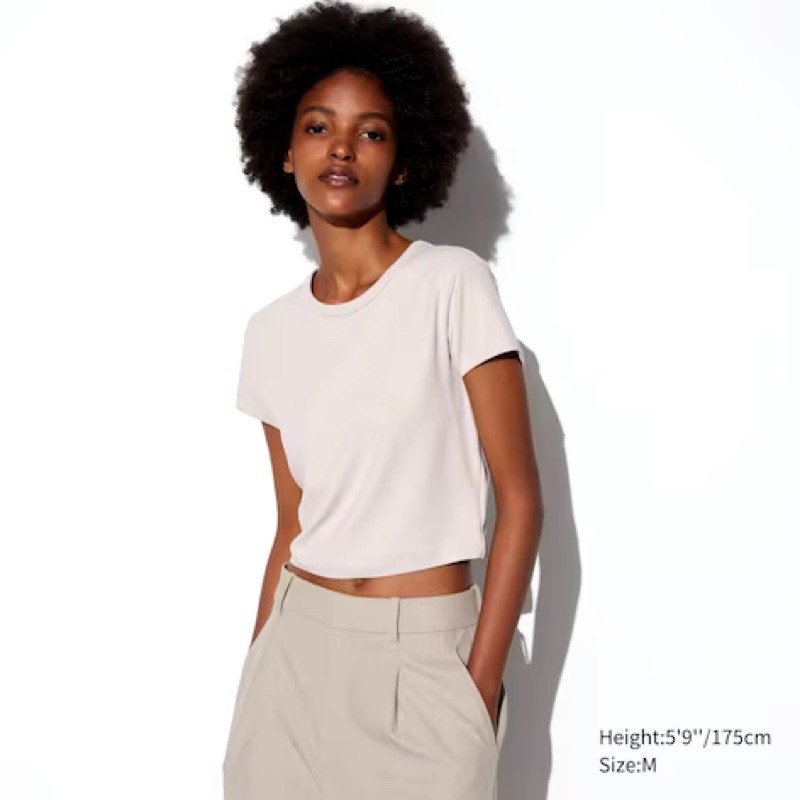 SALE WOMEN AIRism T-Shirt Crop Ultra Stretch Lengan Pendek (Set-Koordinasi) UNIQLO