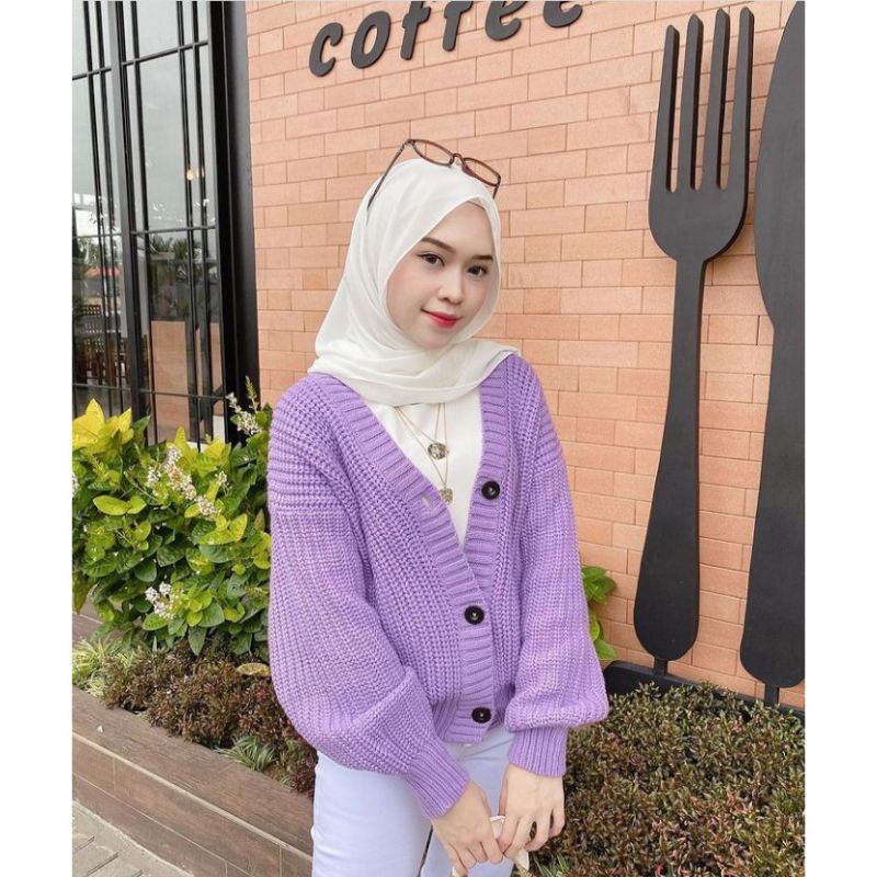 Cardigan Rajut Crop Wanita Oversize Tebal