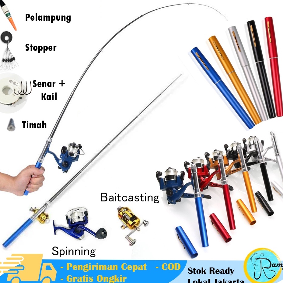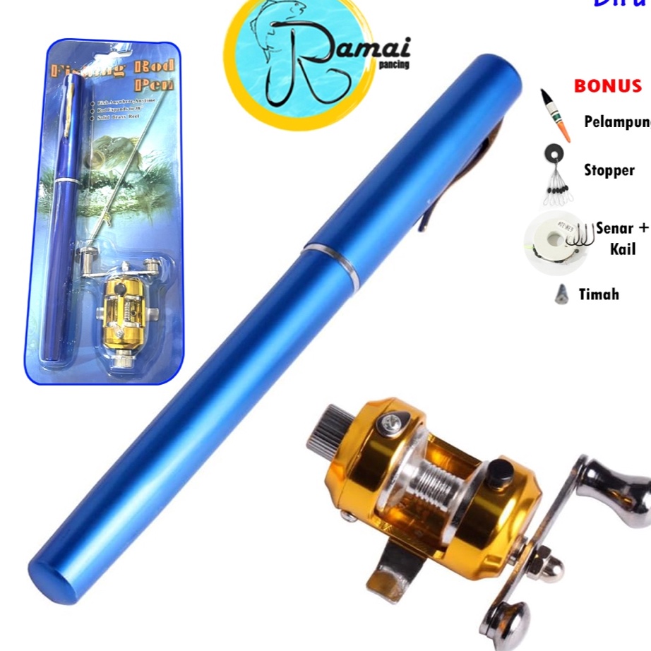 Recomend Satu set Joran Pen mini alat pancing pulpen casting dan spinning