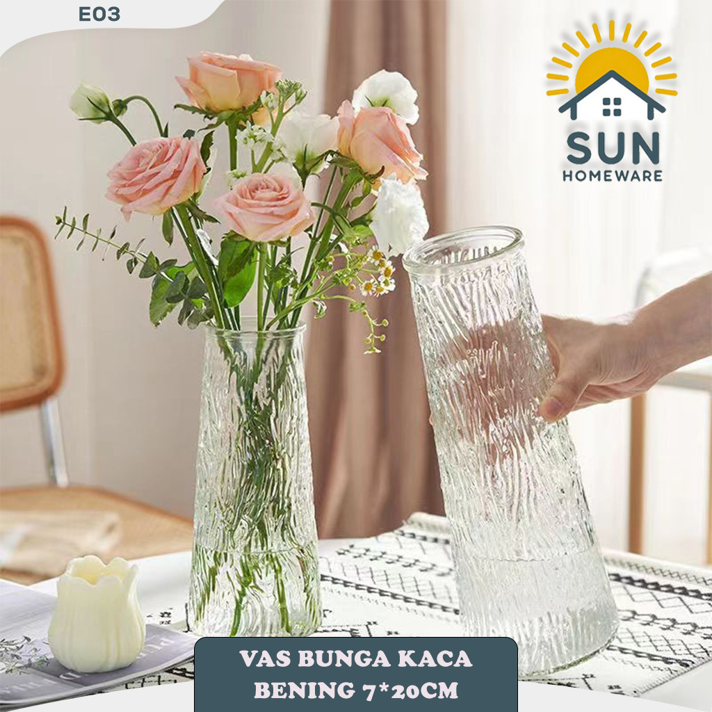 SUN VAS BUNGA KACA BENING 7*20CM E03/ VAS KACA TINGGI BAMBU / VAS BAMBOO / VAS TANAMAN AIR