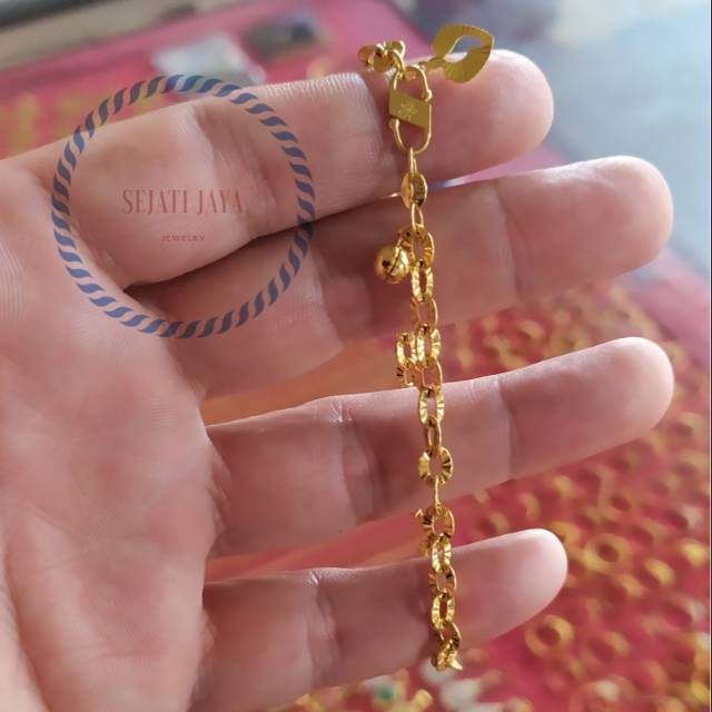 Gelang emas asli fancy model variasi kunci daun emas kadar 375