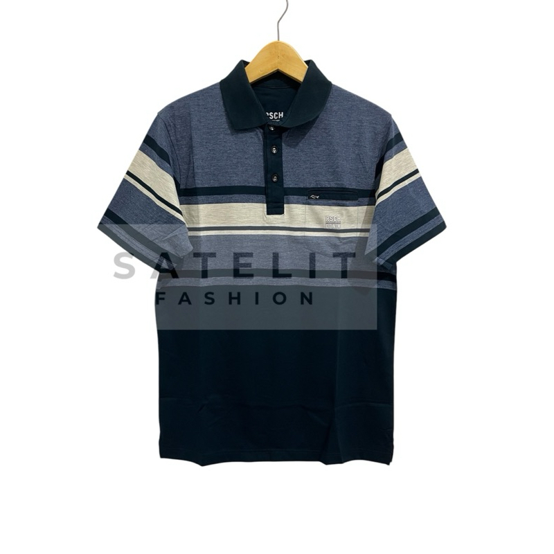 Rsch Original Kaos Kerah Polo Pria Distro Motif Salur Garis #1 (Kancing Kantong)