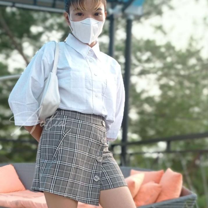 Celana Rok Korean Style Mini Skirt Motif Kotak 오