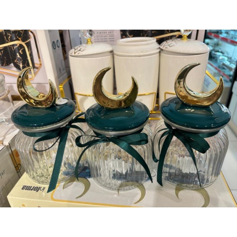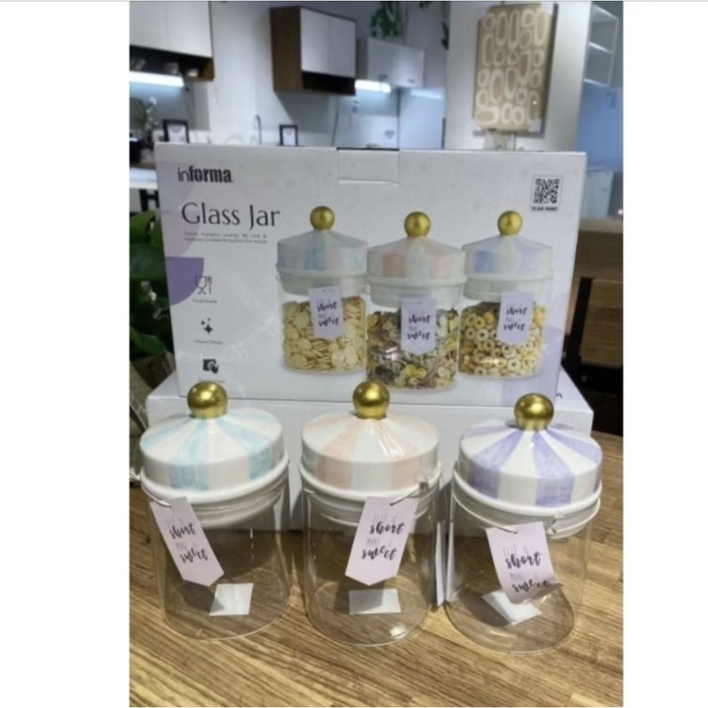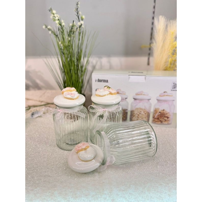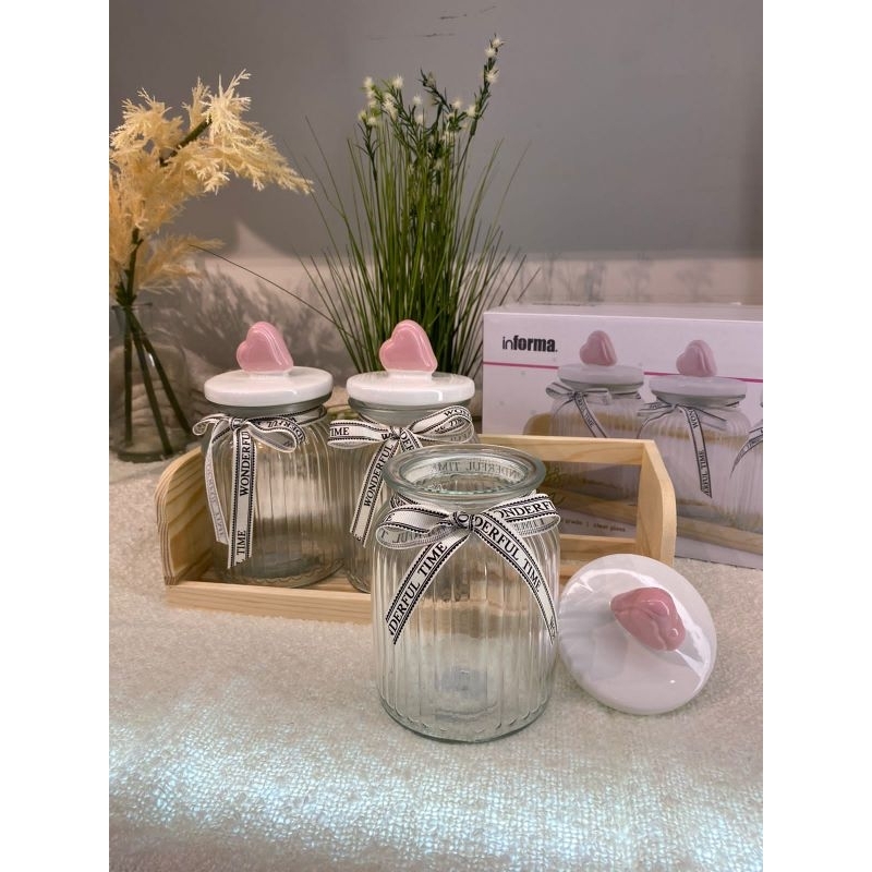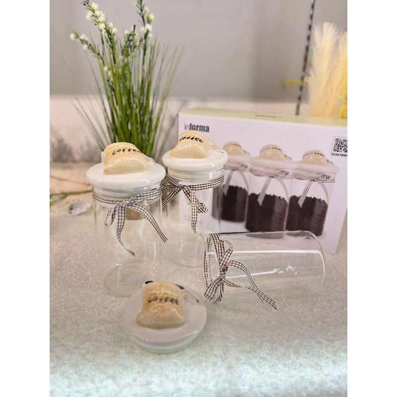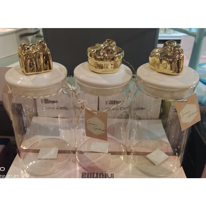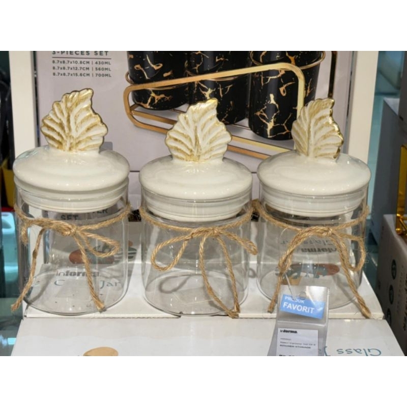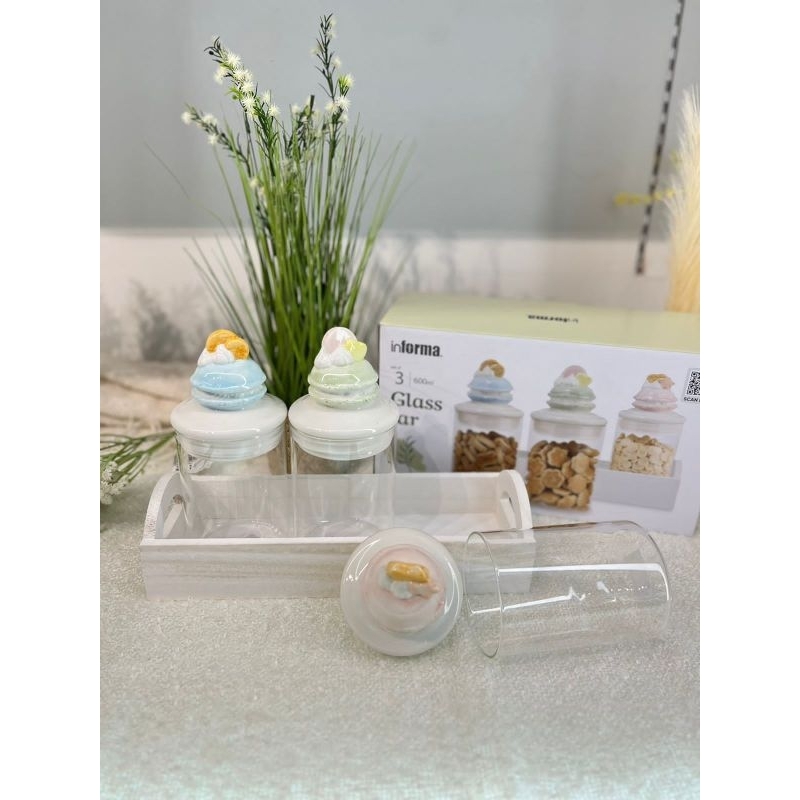 Informa SEt Toples FREE PAKING KAYU Toples Macaroon set of 3 pcs / Toples kue lebaran/Toples shabby /Toples lebaran / Toples kaca kedap udara