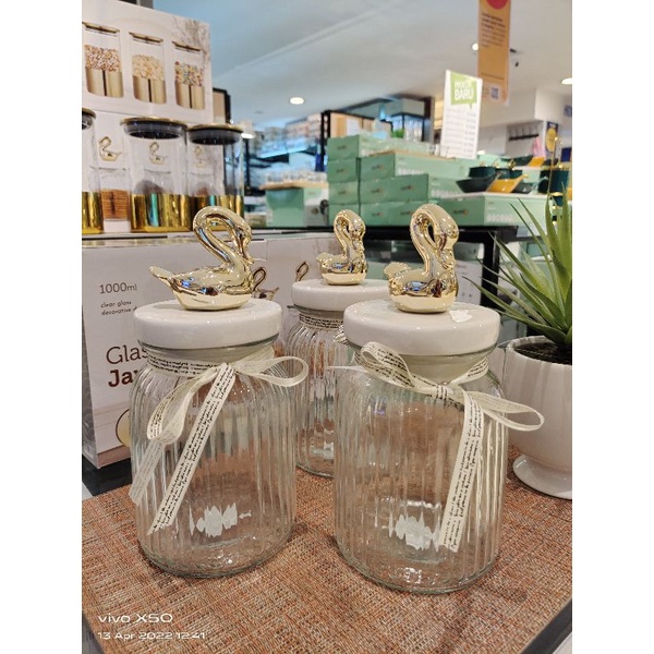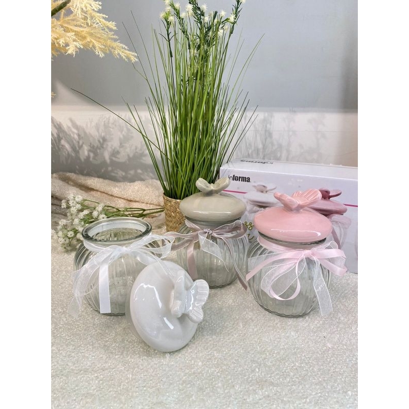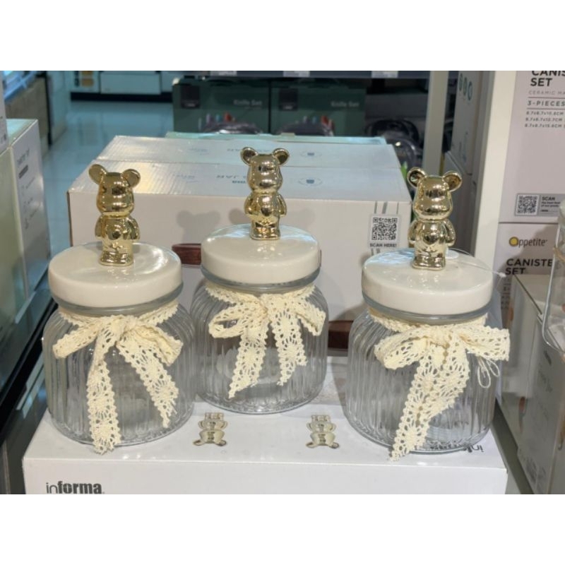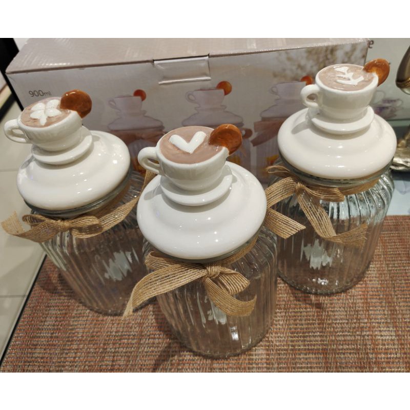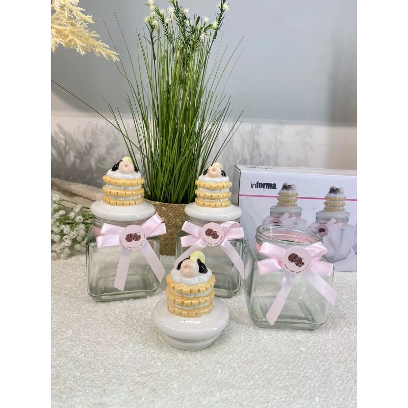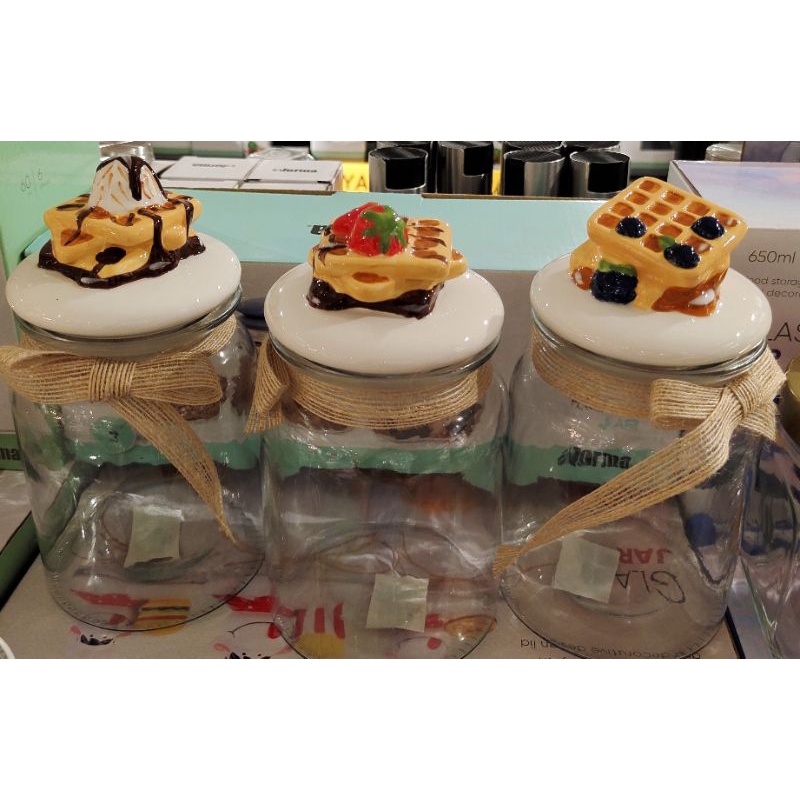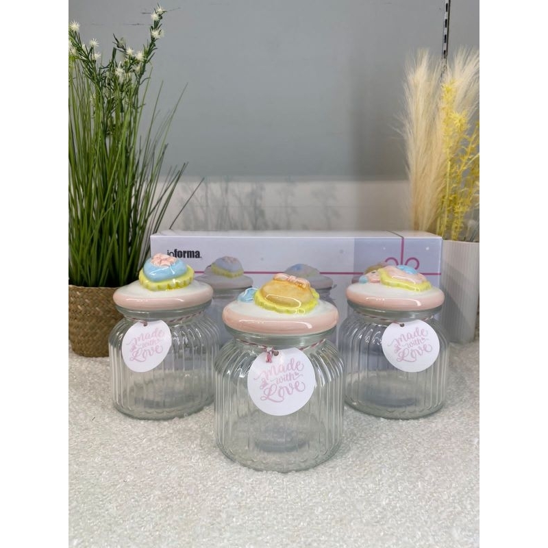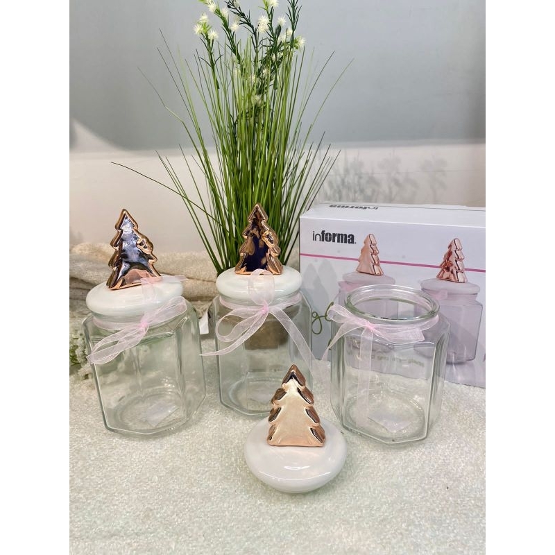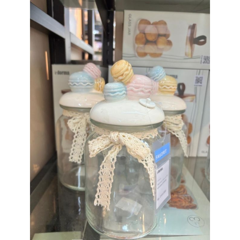 Informa SEt Toples FREE PAKING KAYU Toples Macaroon set of 3 pcs / Toples kue lebaran/Toples shabby /Toples lebaran / Toples kaca kedap udara