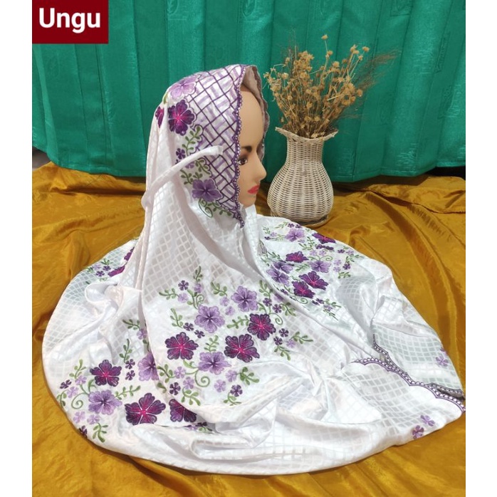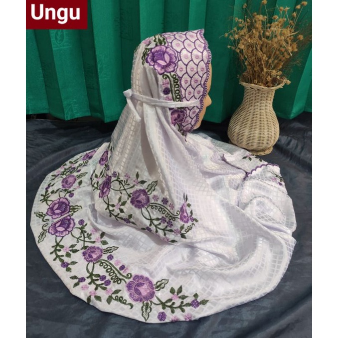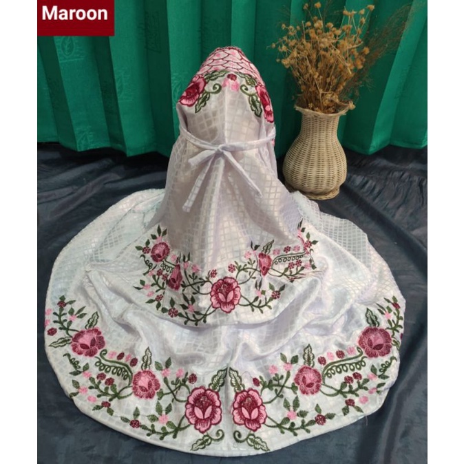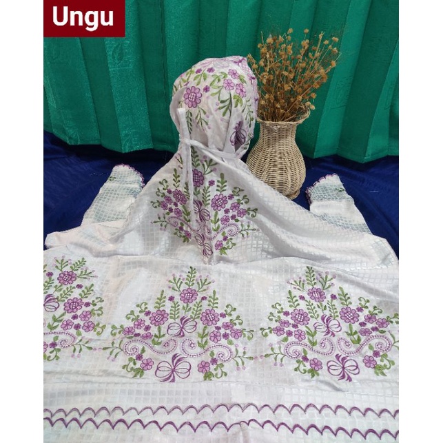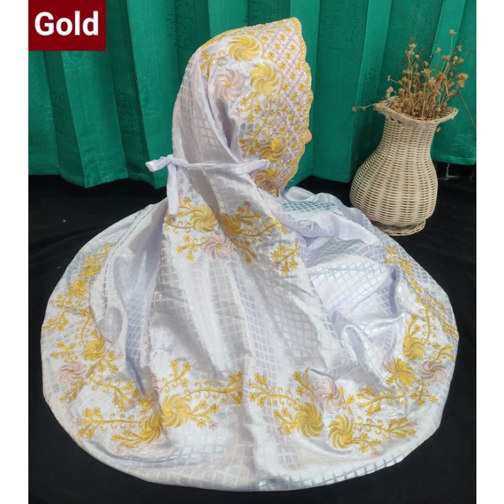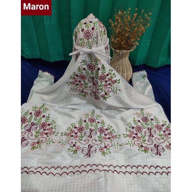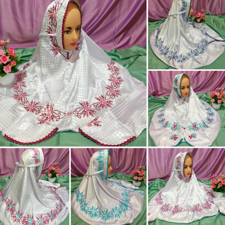 STOK TERBATAS Mukena Kudus Sutera Bulgari Ukuran Dewasa Terusan Motif Bordir Padi Padi