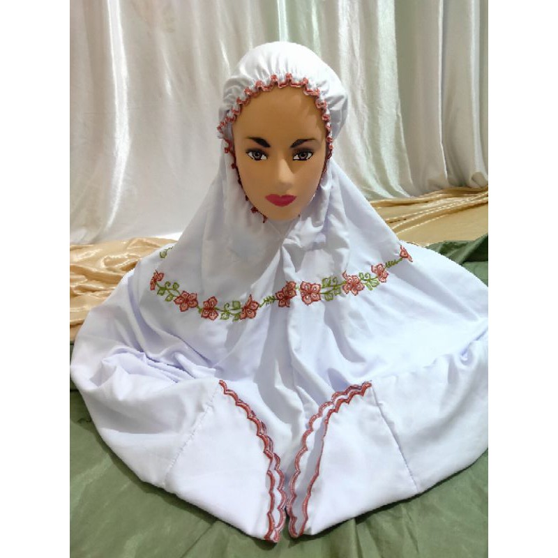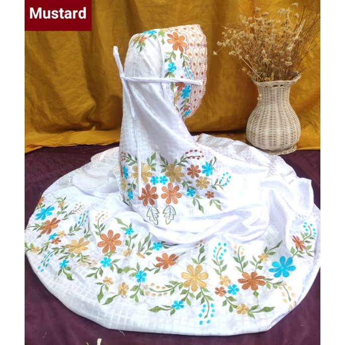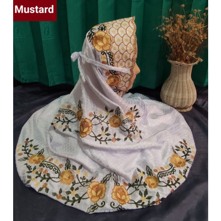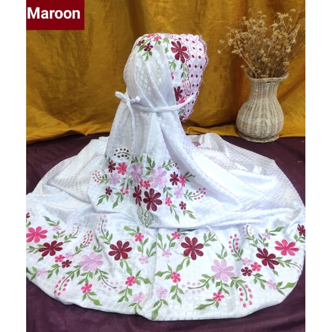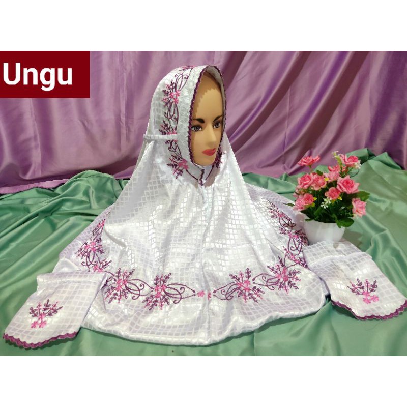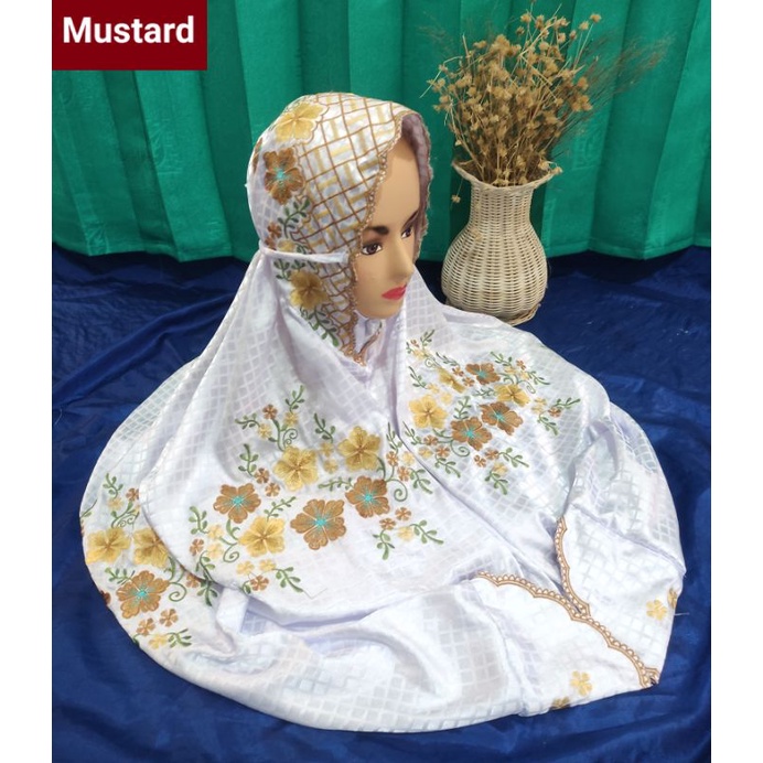 STOK TERBATAS Mukena Kudus Sutera Bulgari Ukuran Dewasa Terusan Motif Bordir Padi Padi