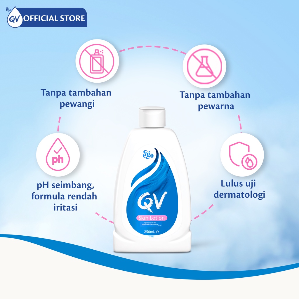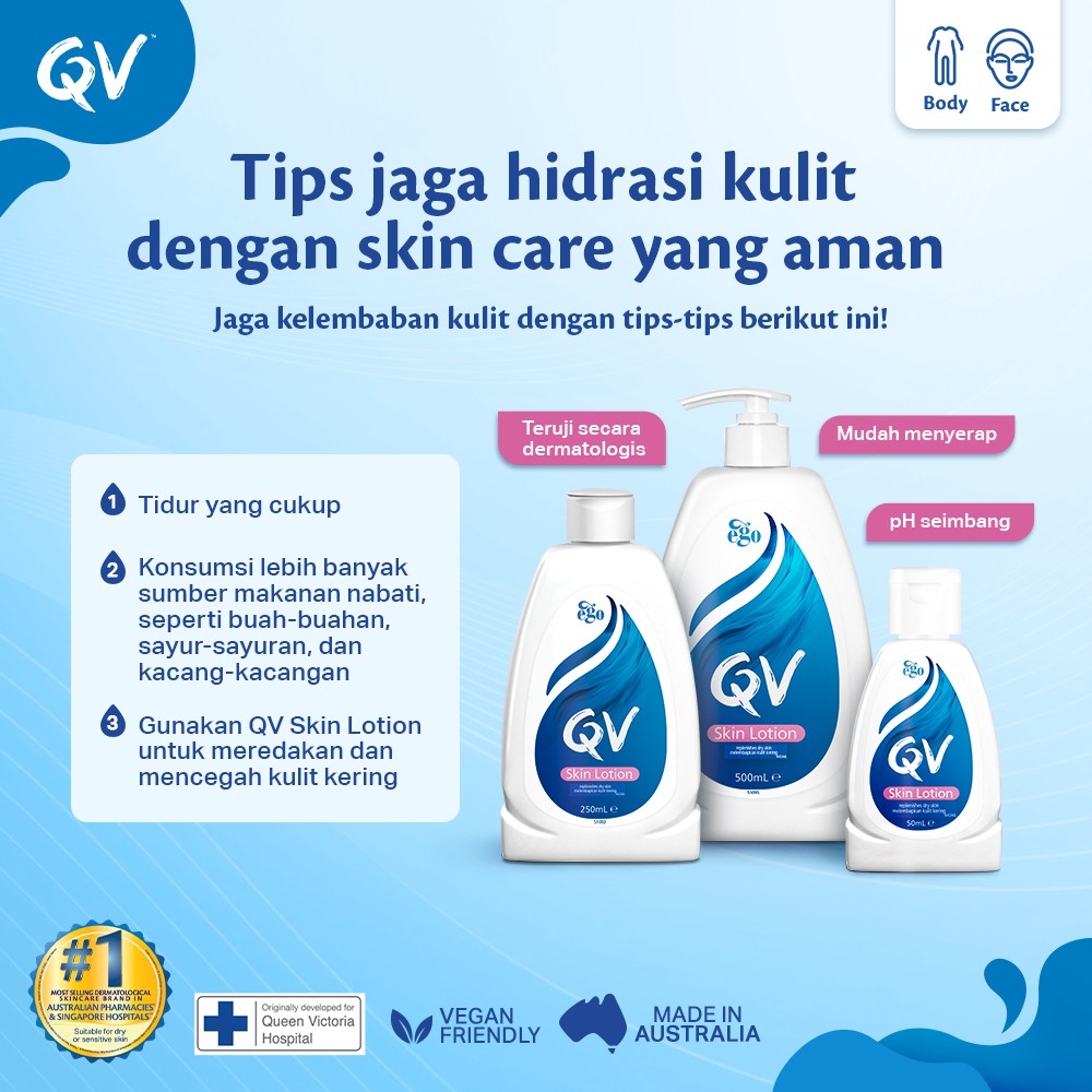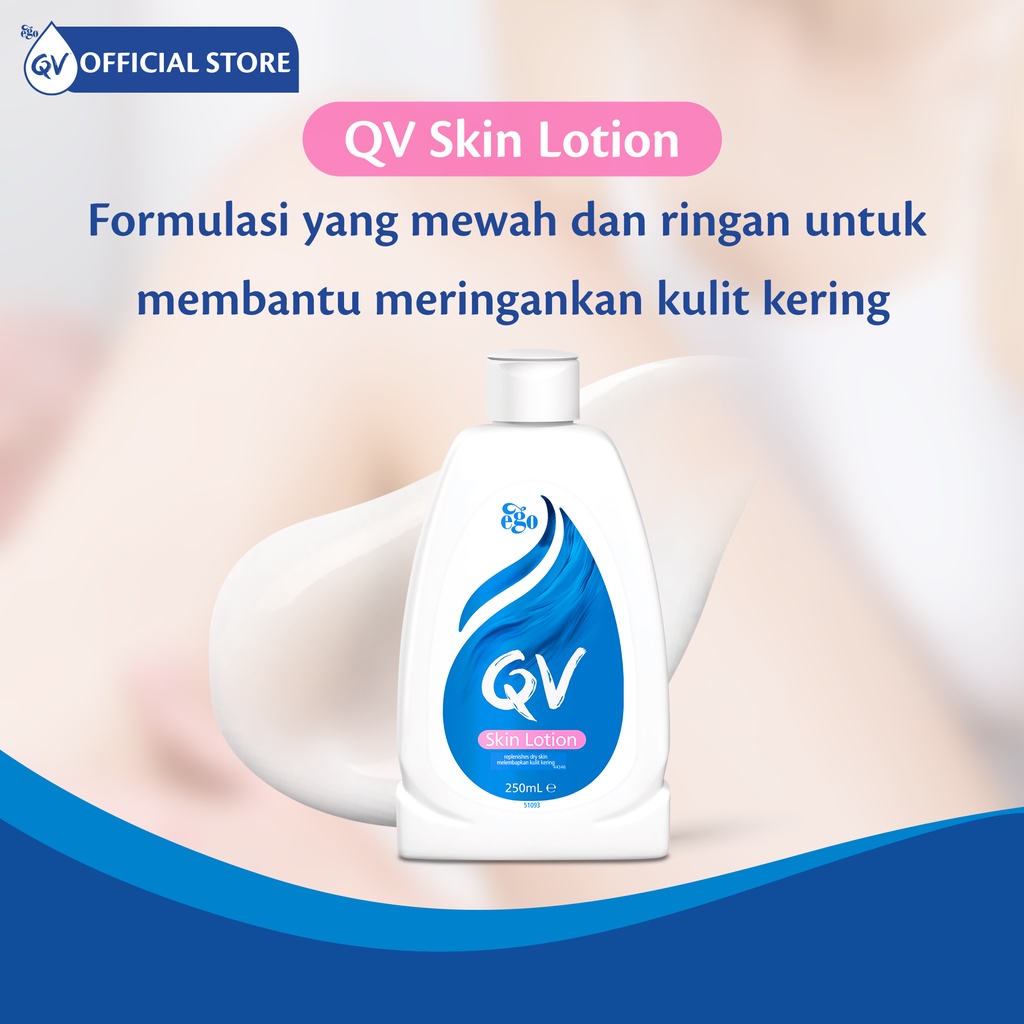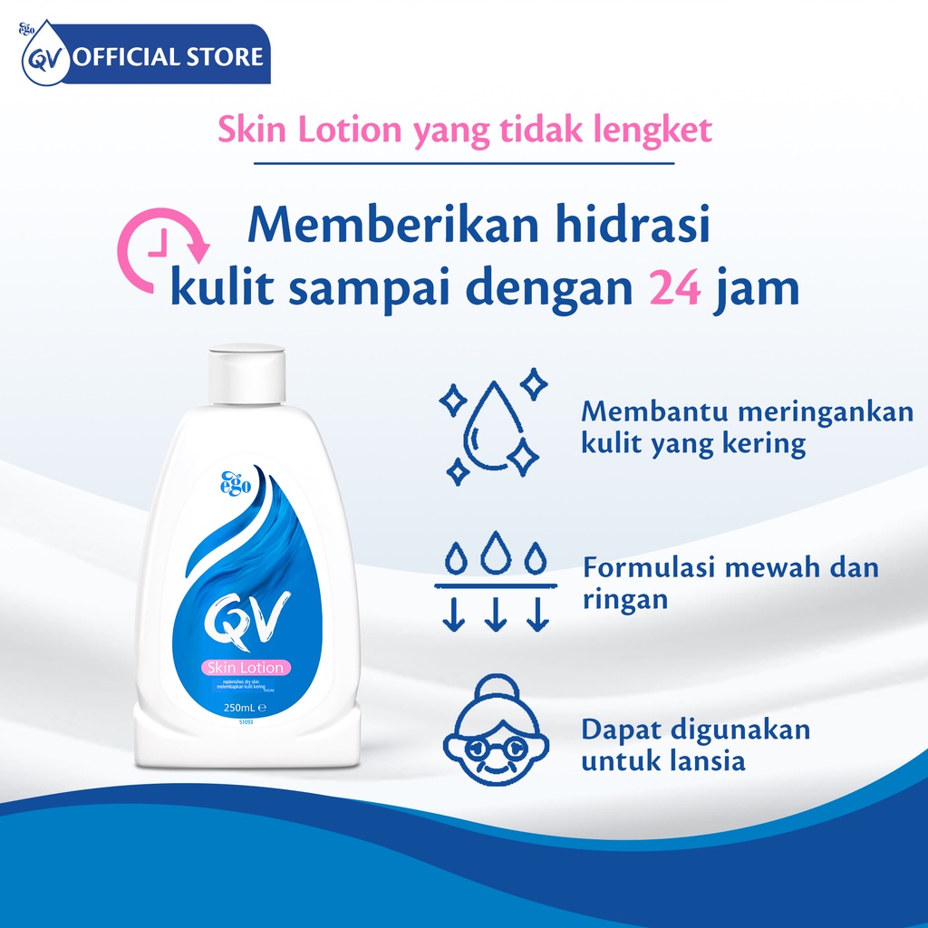 QV Skin Lotion 250ml untuk kulit normal, kering dan sensitif. Dengan Glycerin, Dimethicone, dan Petrolatum - Losion Ringan dan Cepat Menyerap. Melembapkan Kulit Normal, Kering dan Sensitif. pH seimbang