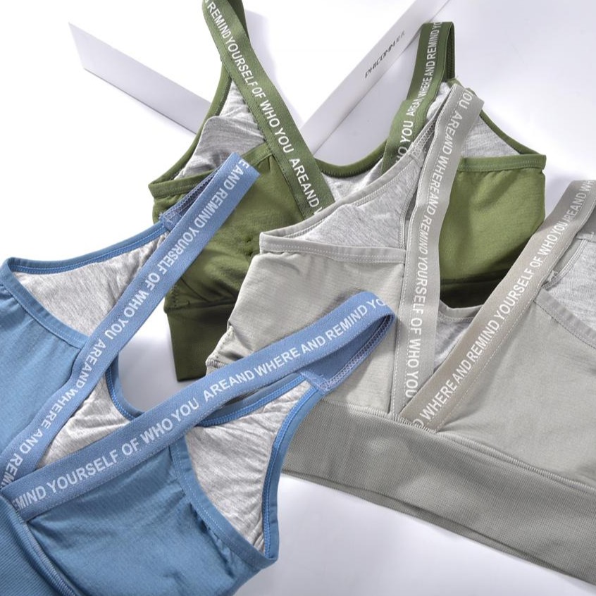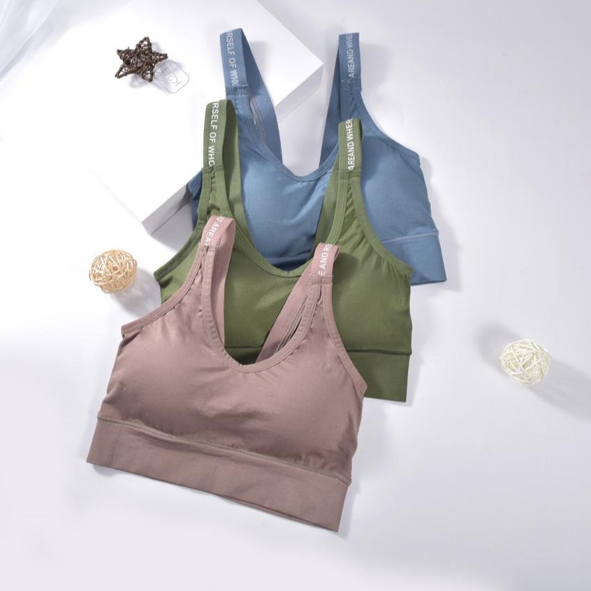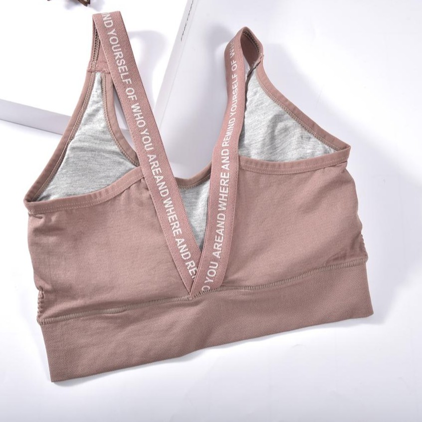 Sport Bra Gym Olahraga Yoga Wanita Tanpa Kawat Elastis Bra Sports Trendy V Shape