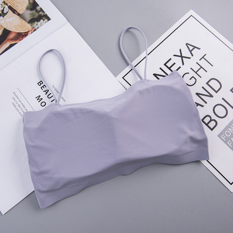Bra Kemben Tanpa Kawat Busa Tipis Bahan Ice Silk Seamless Tanpa Jahitan Crop Top Wanita Tanpa Jiplak