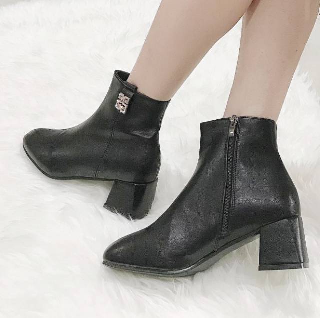 MVS GVENCI / Sepatu Boots Hak Kulit Kerja Kantor Fashion Wanita Import