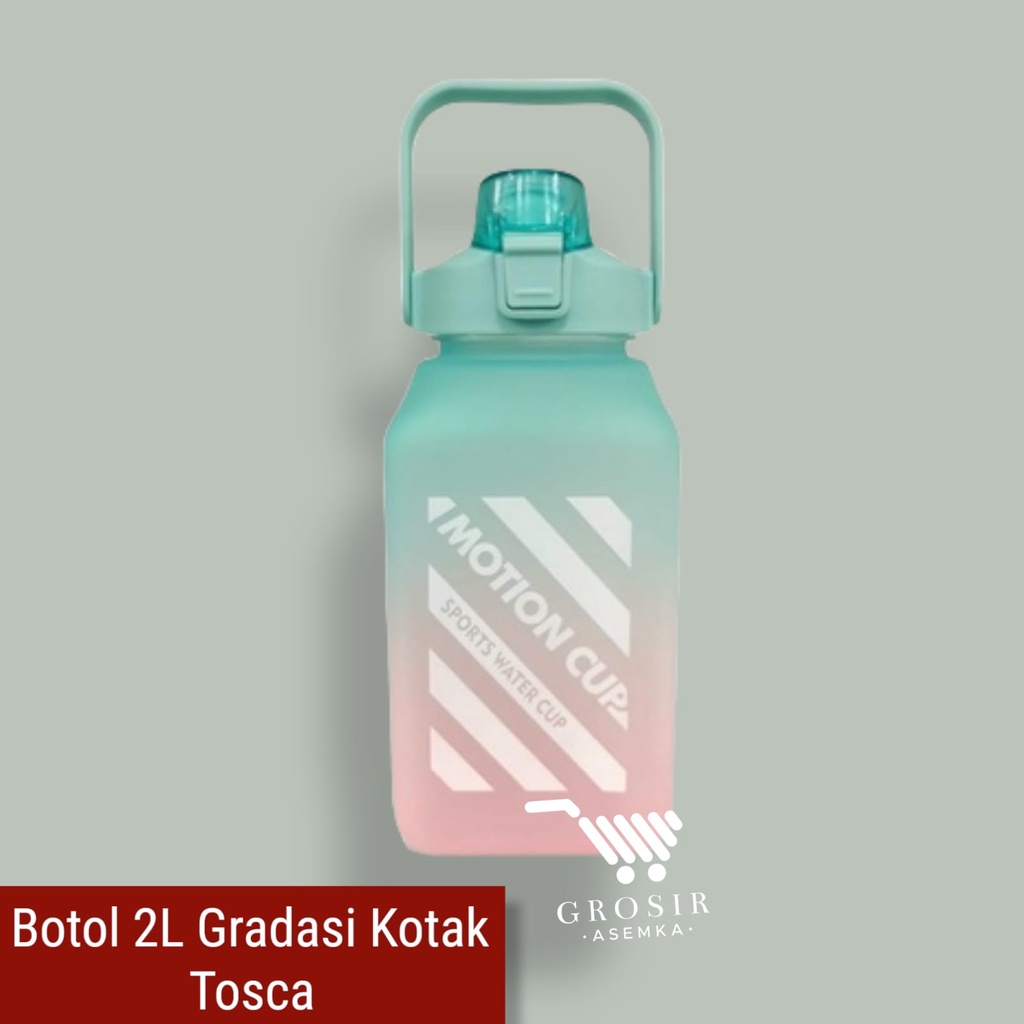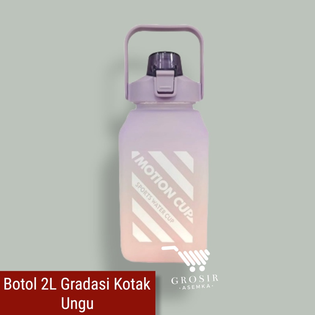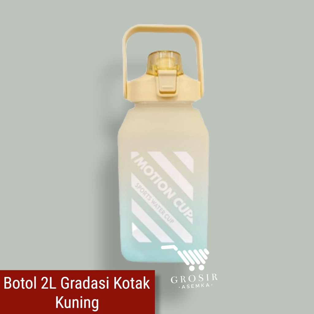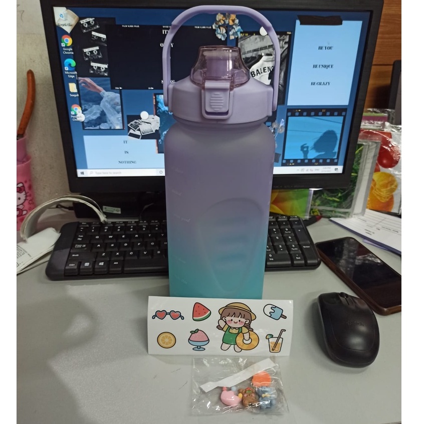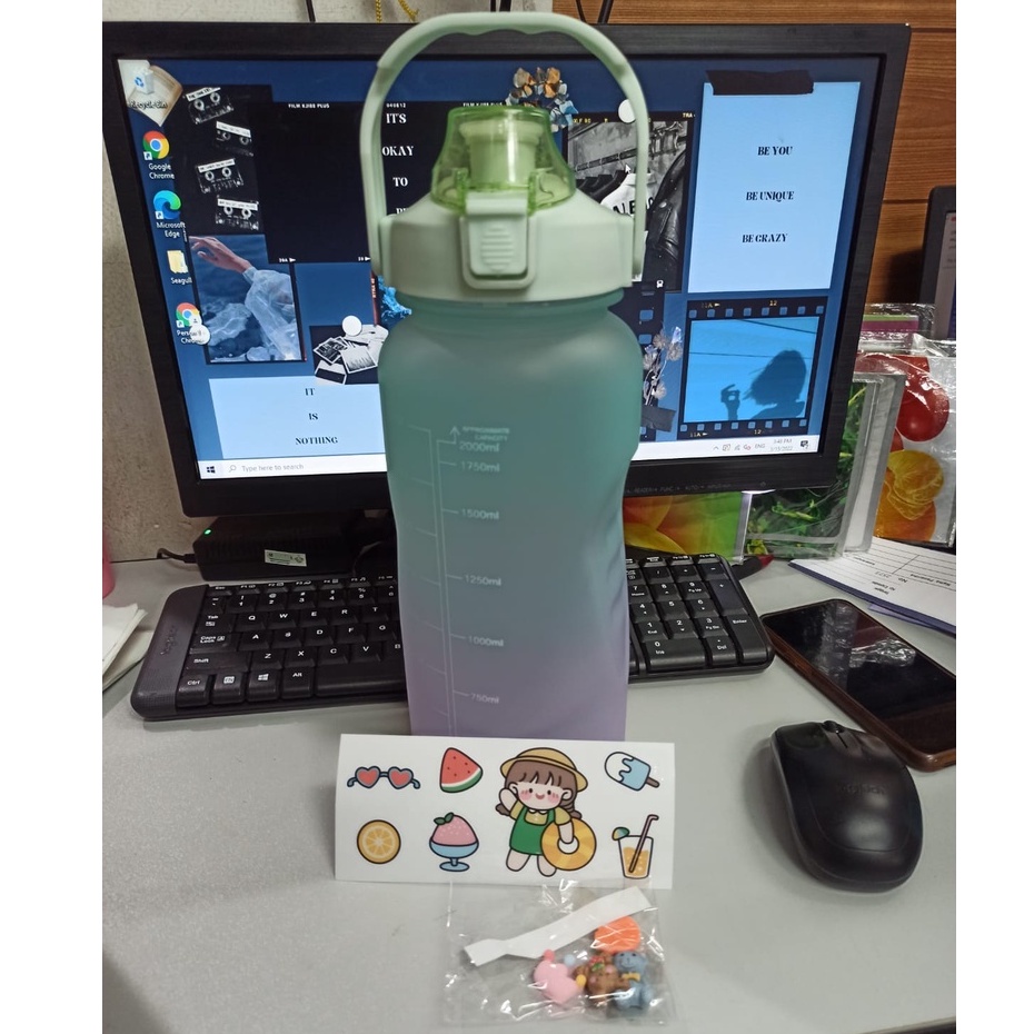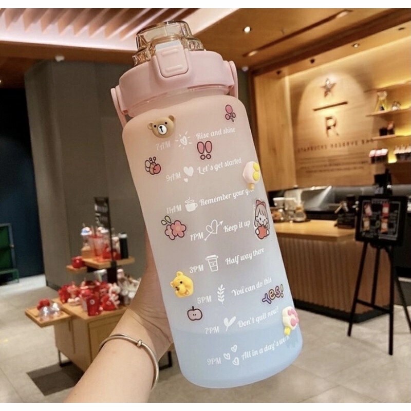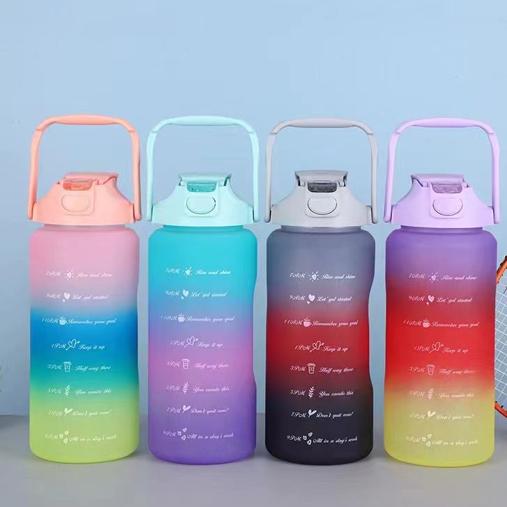 Botol Minum Motivasi 2000 ML 2 Liter Botol Minum Gradasi Sticker 2D & 3D Botol Minum Korea Penanda Waktu Viral
