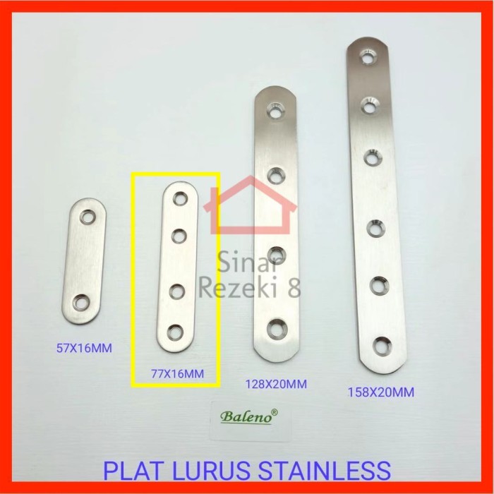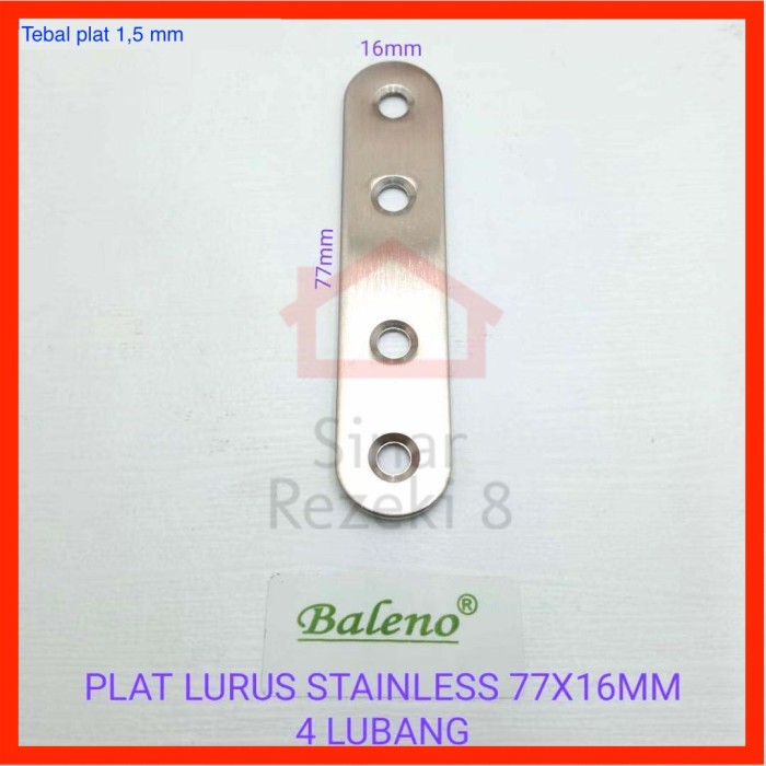 Plat Lurus 77 x 16 mm STAINLESS 4 Lubang Siku Konektor Sambungan Rata
