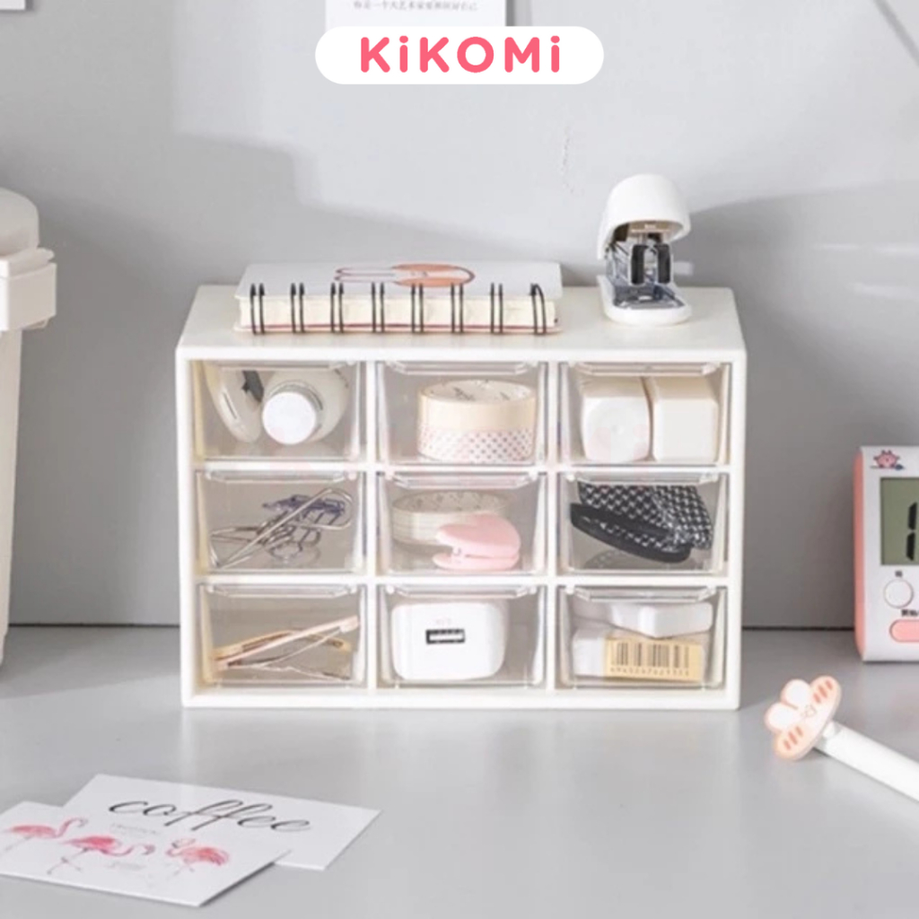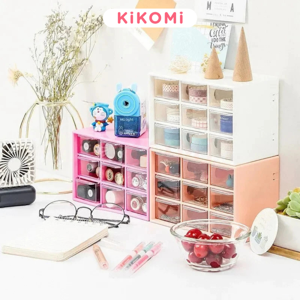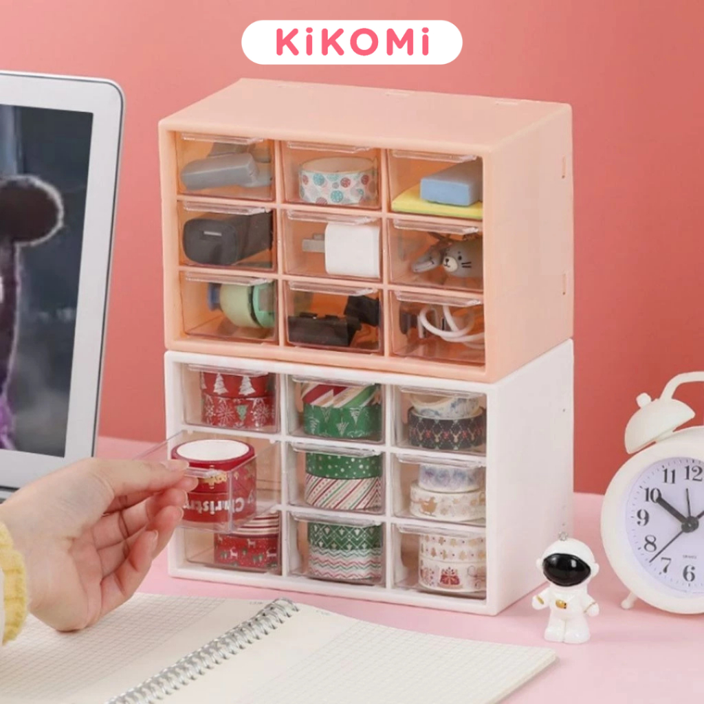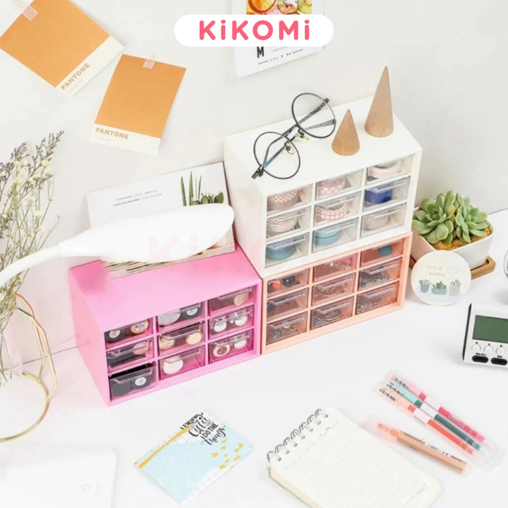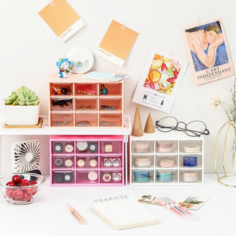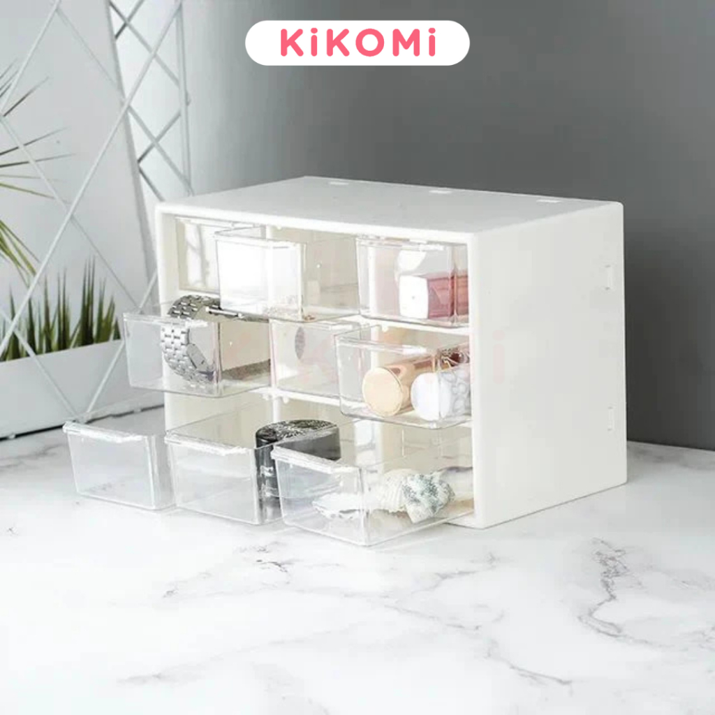 Kotak Penyimpanan Serbaguna 9 Laci Transparan Organizer Meja Mini Untuk Perhiasan Aksesoris DIY - KK