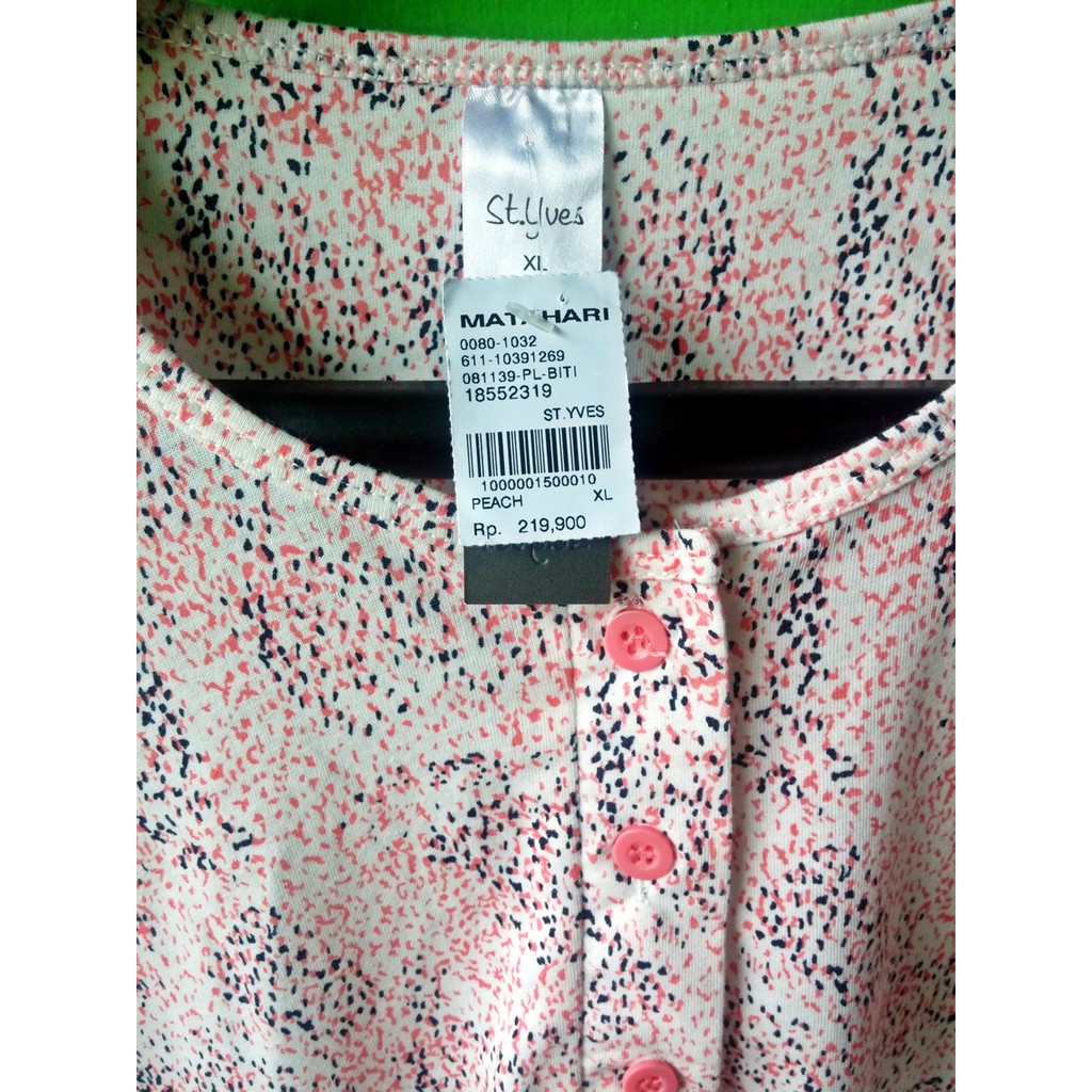 St.Yves PL-BITI 1Set Piyama Celana + Baju Tidur Wanita Baby Doll Motif Peach Original Matahari