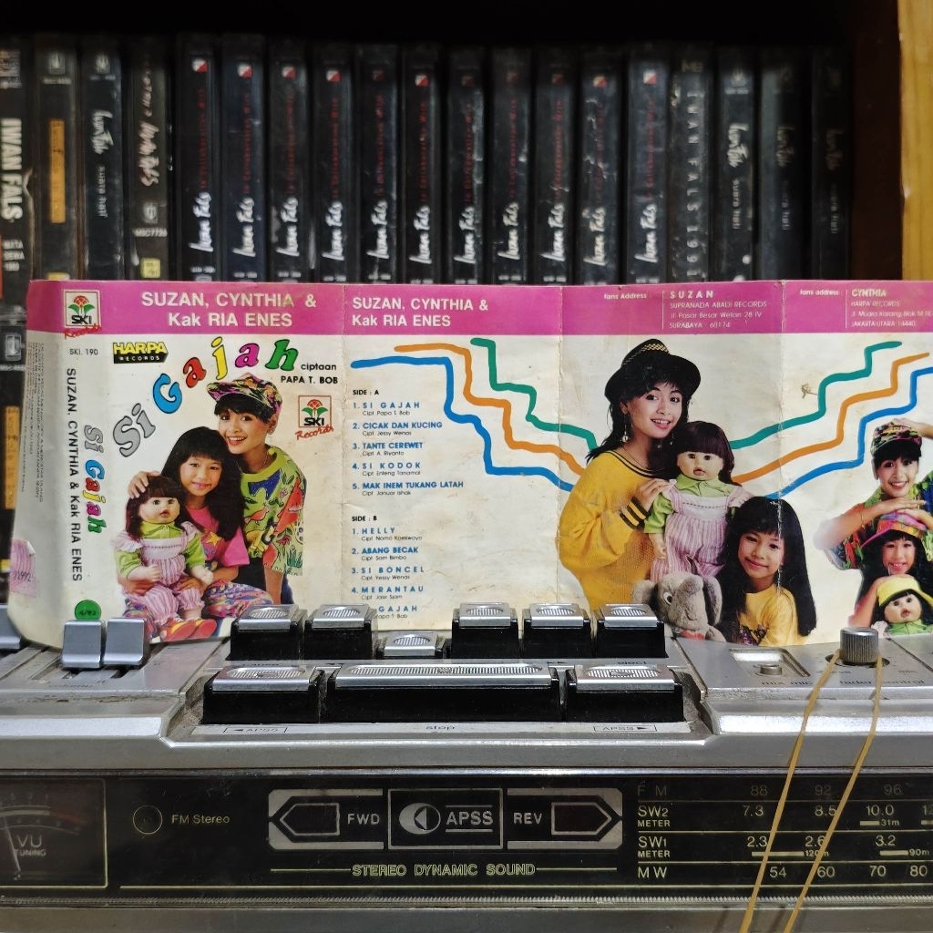 Kaset - Si Gajah - Suzan, Cynthia, & Kak Ria Enes - Kaset Pita - Radio Tape - Radio - Pemutar Kaset - Retro - Classic - Cassette - Cassette Tape - Nostalgia - Audio - Music - Musik - Indonesia - Lagu Anak Anak