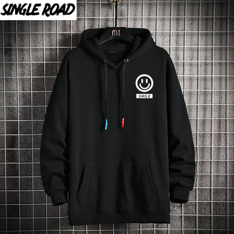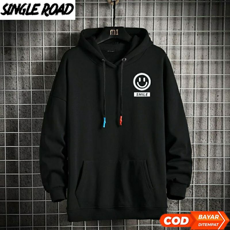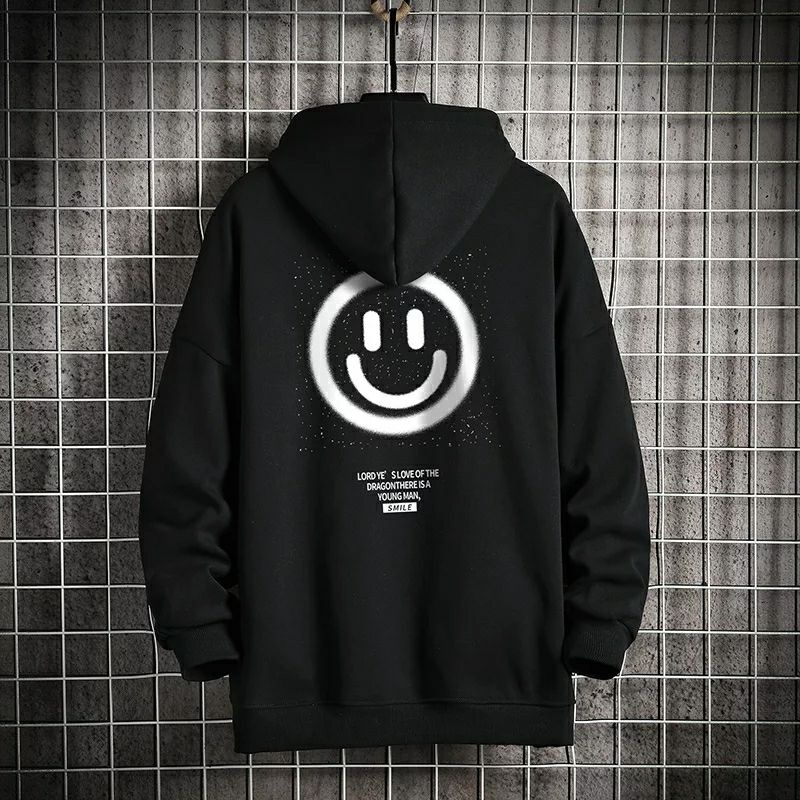 HOODIE Smile Oversized Black FLECE PE TEBAL//Hoodie pria dan wanita