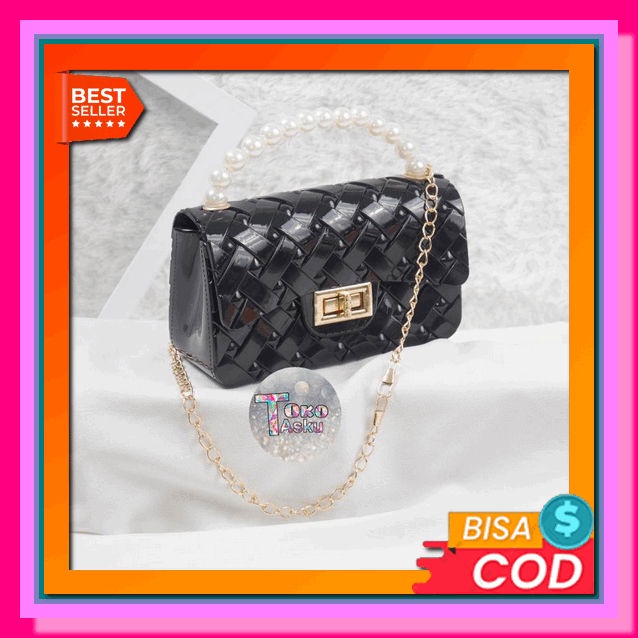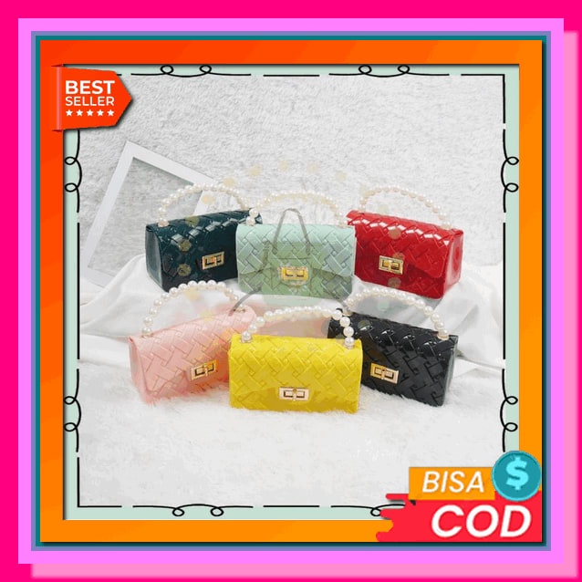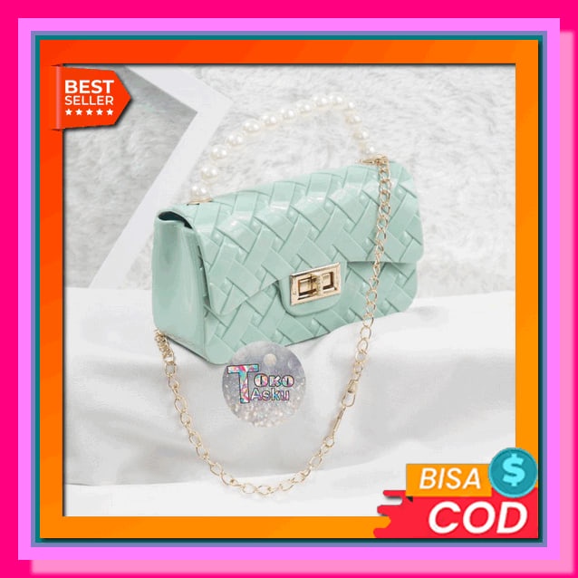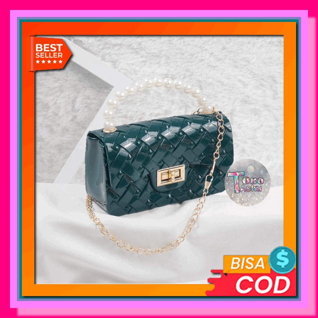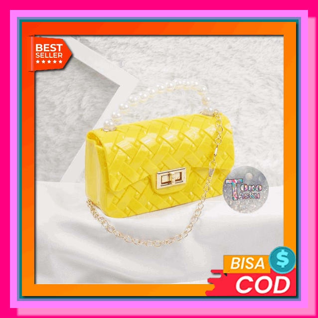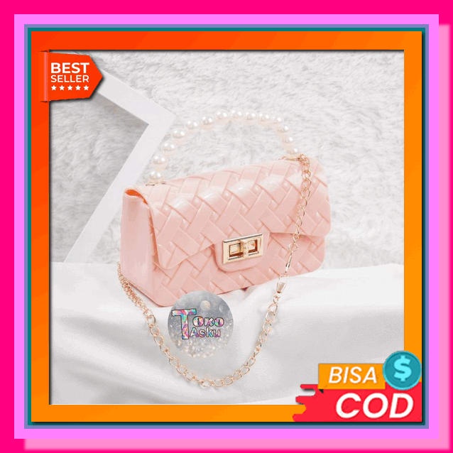 Waistbag Wanita Nadia Premium Tas Selempang Slempang Dada Depan Pinggang Cewek Slingbag Perempuan ㊘ Tas Selempang Glossy Jelly Motif Anyam Pearl| Tas Wanita - Merah