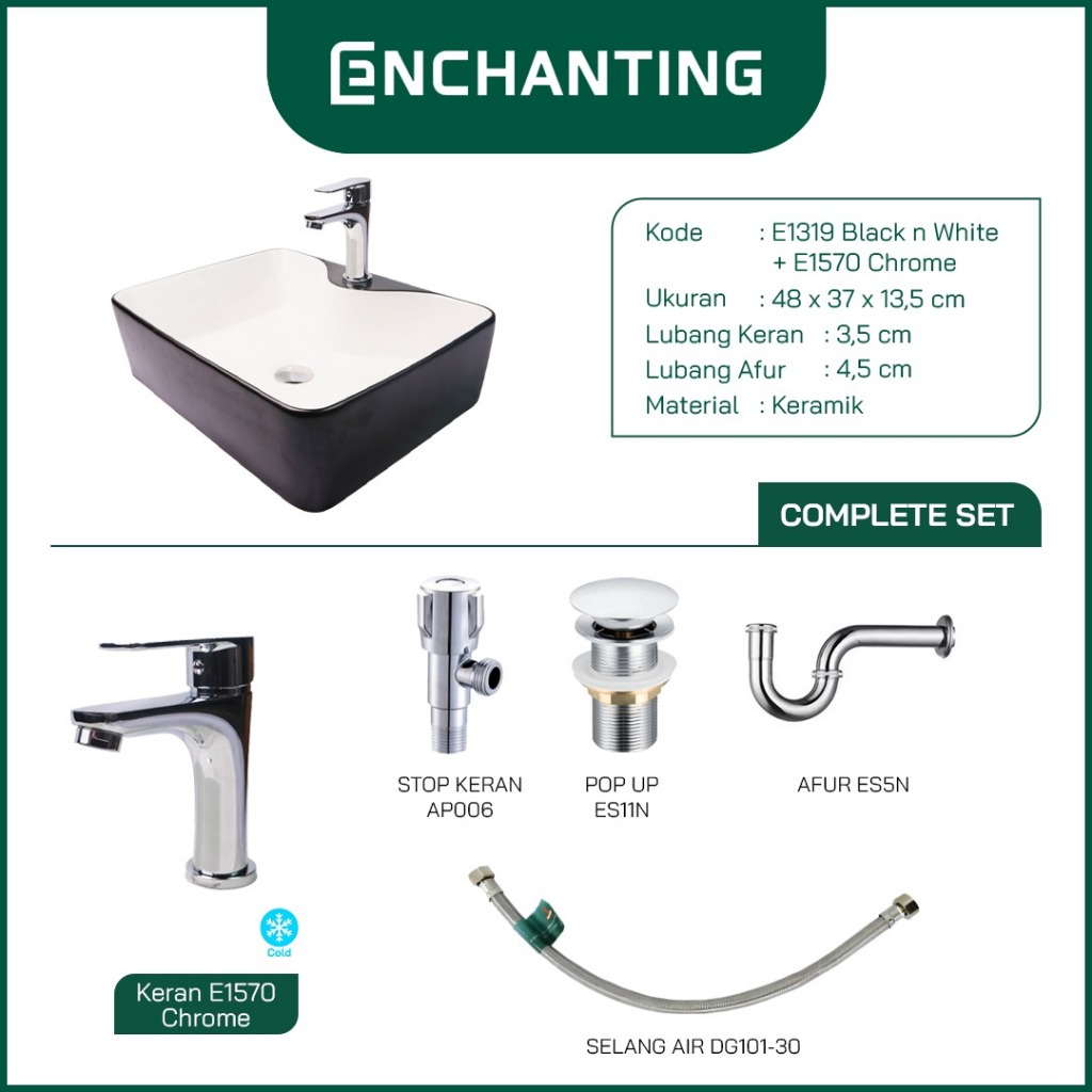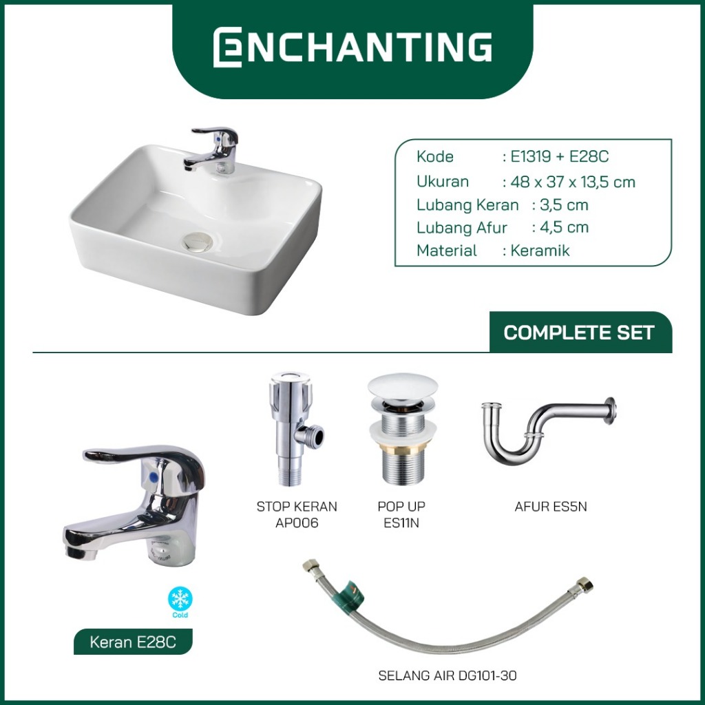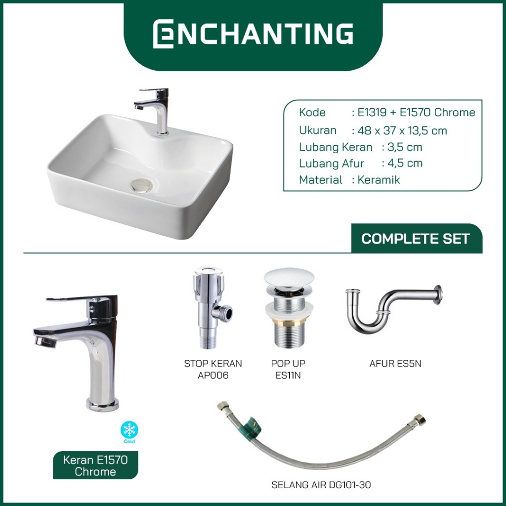 Ramadhan Home Sale Wastafel Meja SET Keramik Europe Enchanting E1319SET White