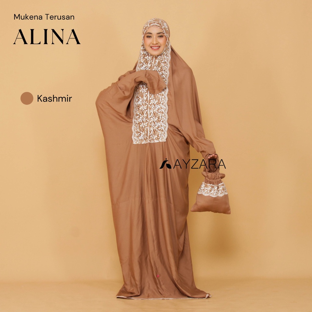 Ayzara - Mukena Dewasa Terusan Katun Rayon Polos Renda Lajuran Alina