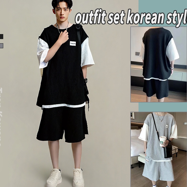 KODE P57E Baju Setelan Pria Baju Olahraga Pria Ootd Korean Style Baju Terbaru 225 Outfit Pria Keren 1 Set Kaos Pria Original Kaos Cowok Oversize MXXXL