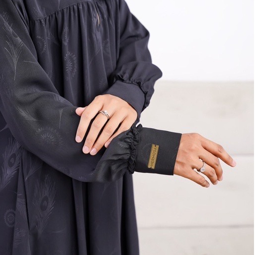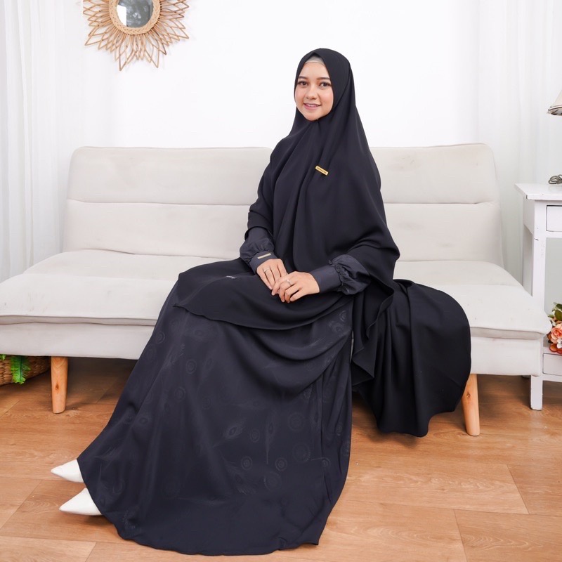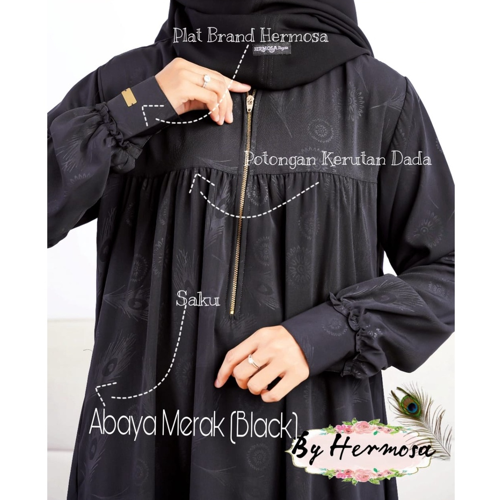 Hermosa - Abaya Embos Motif Merak Hitam Wolfis Premium I Abaya Kekinian I Gamis Hermosa