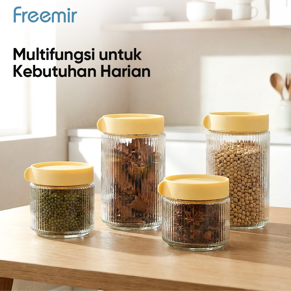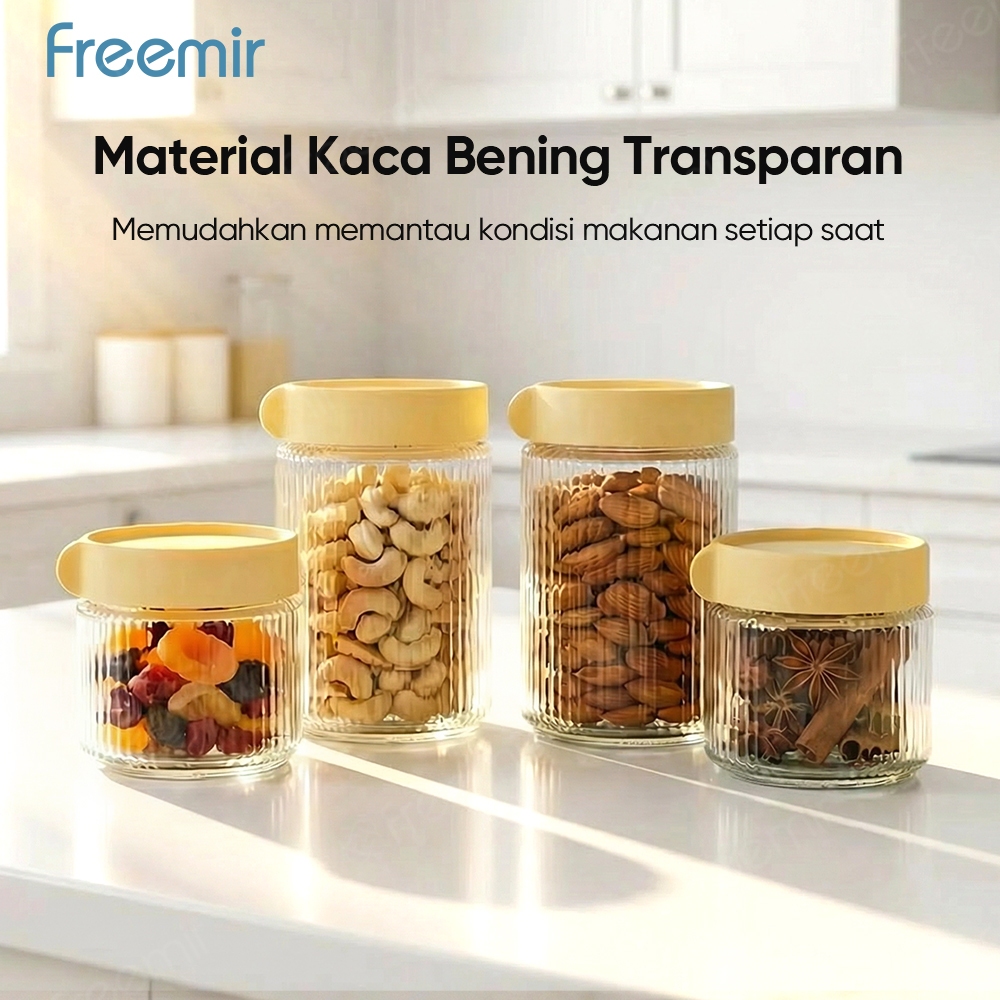 freemir original Toples Kaca isi 4pcs Penyimpanan Makanan Kedap Udara Anti Melempem Toples Warung