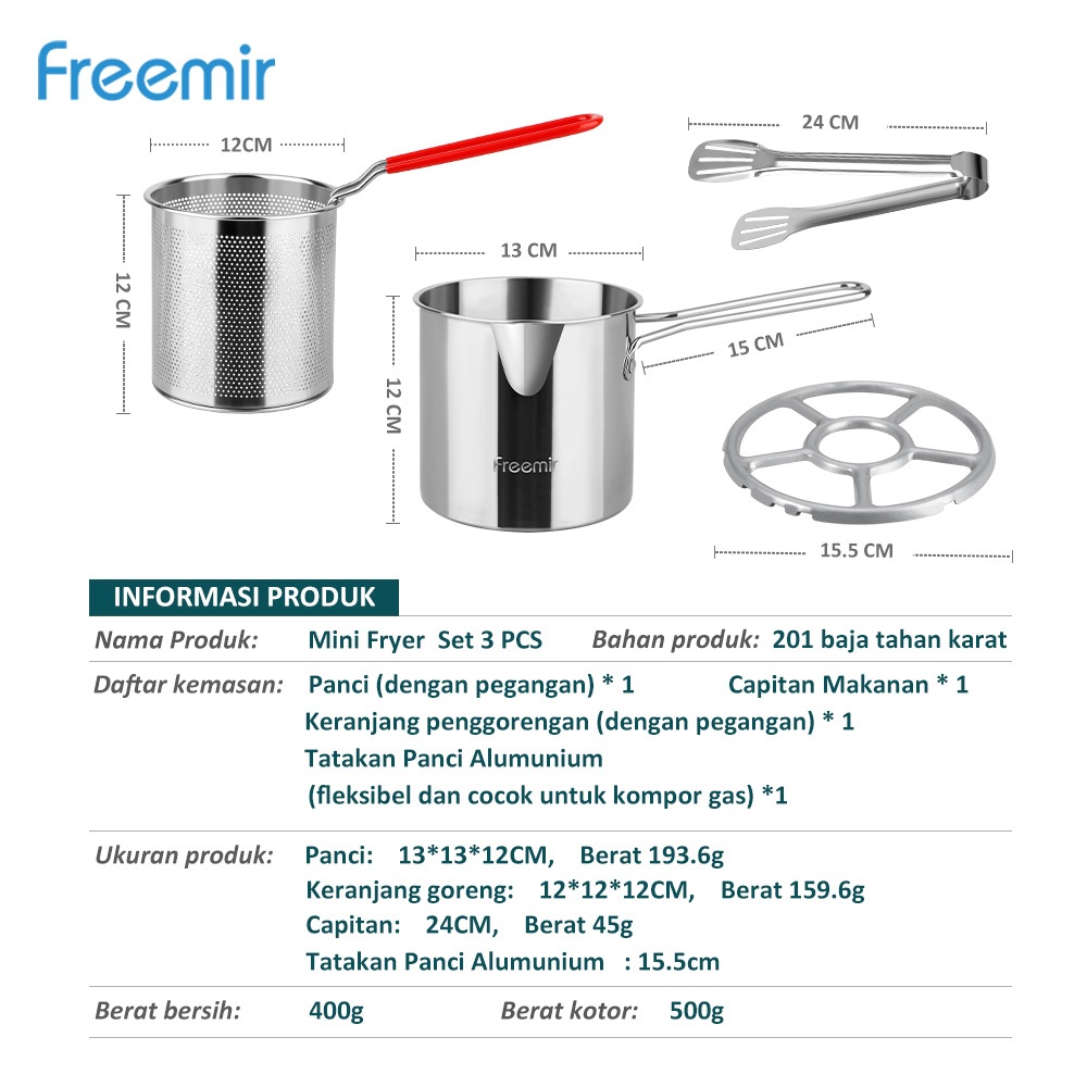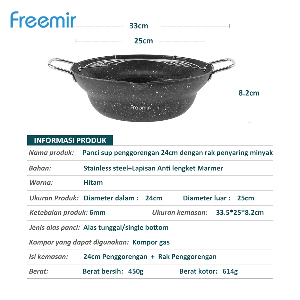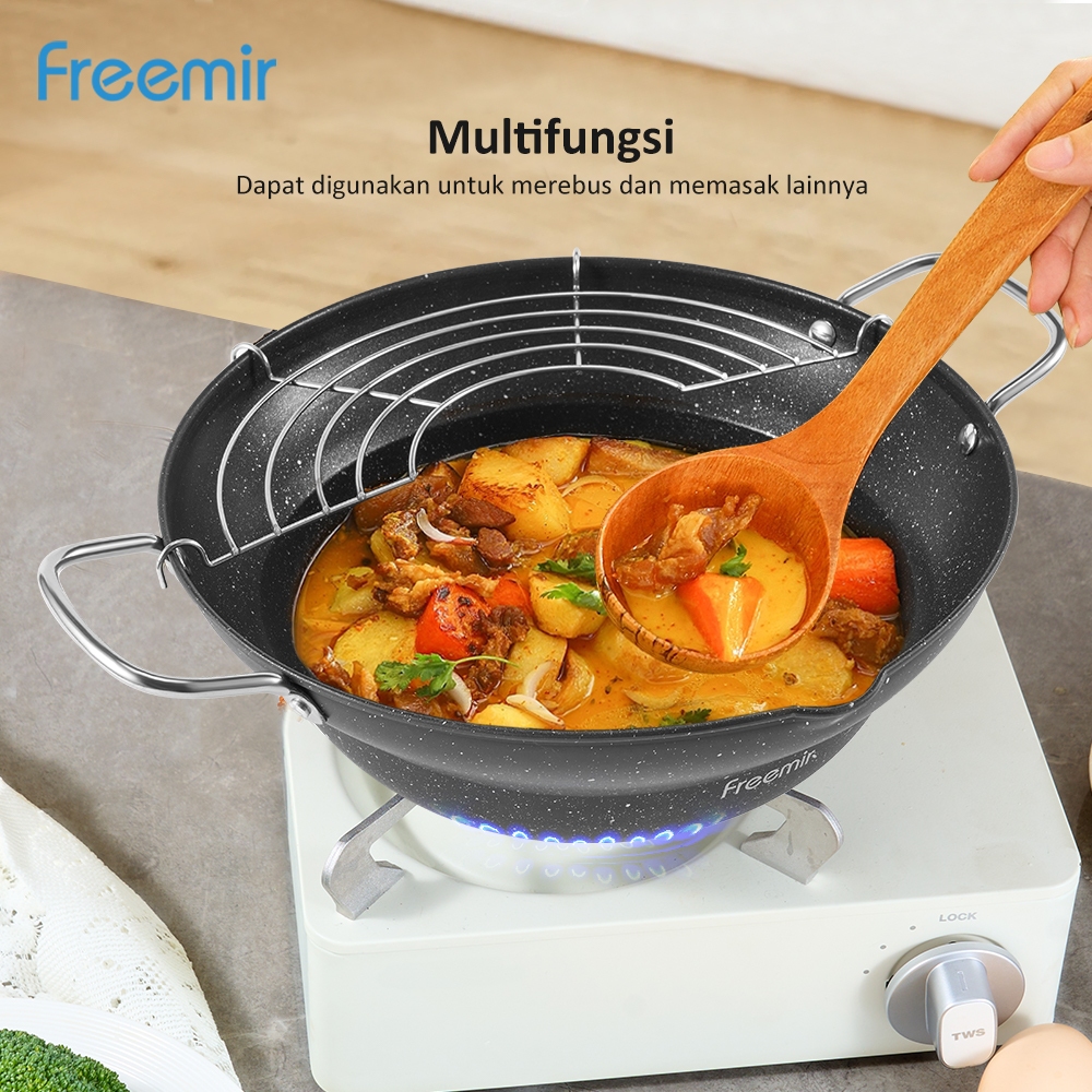 [SPECIAL] freemir Wajan Penggorengan Deep Frying Pot 13/20/24 Cm Anti Lengket dengan Peniris
