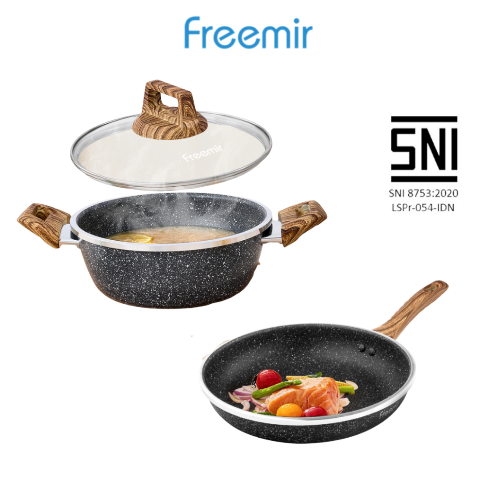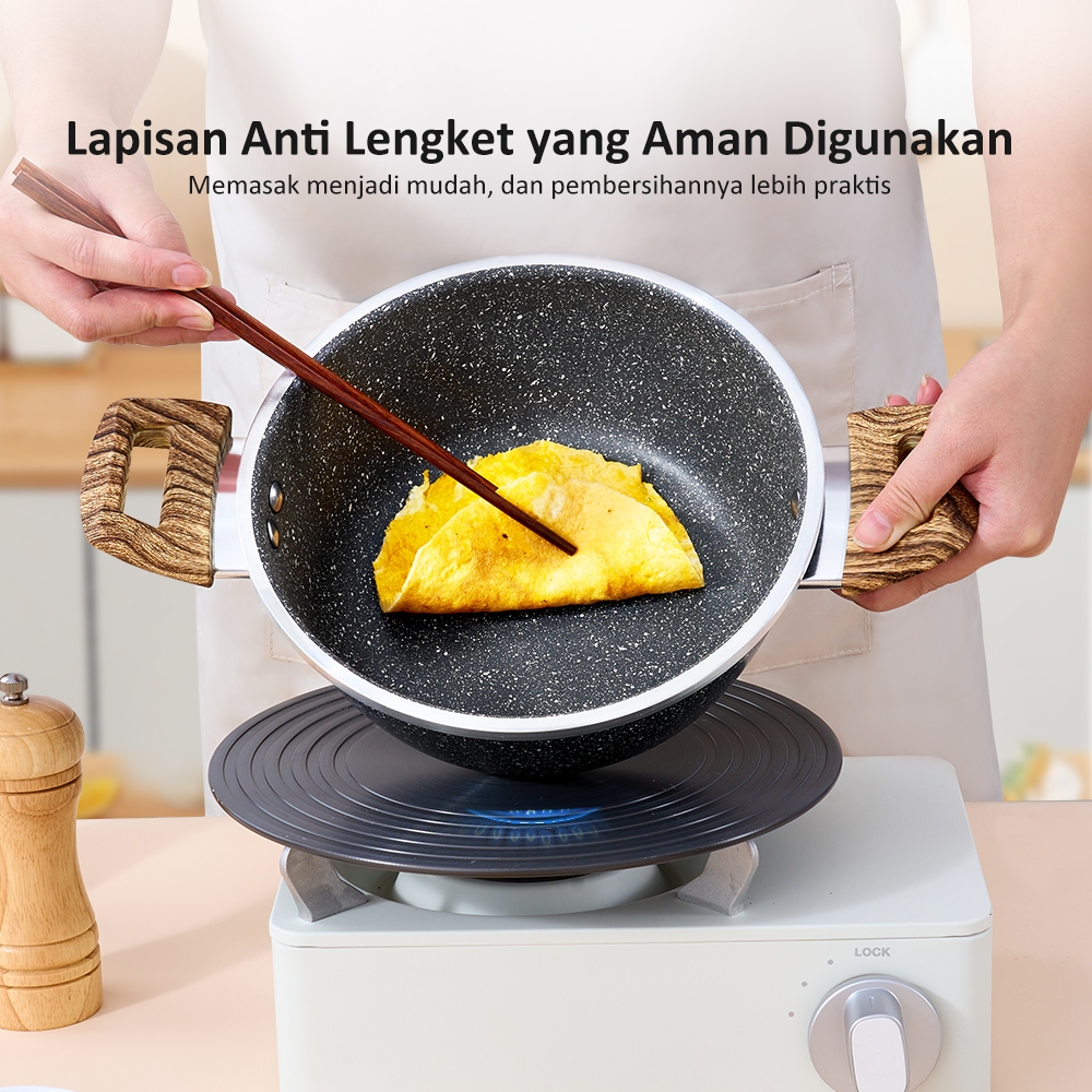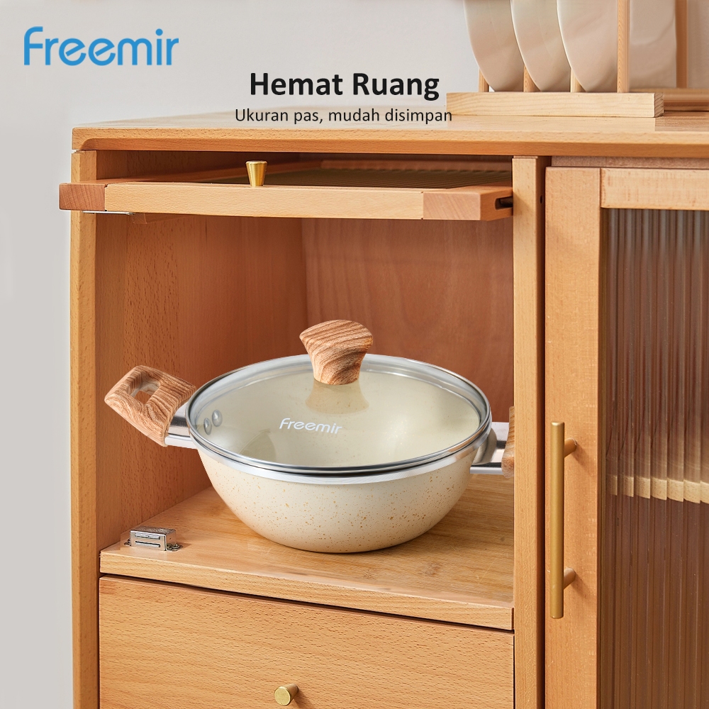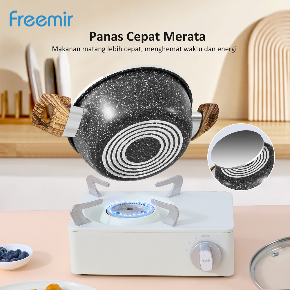[SPECIAL] freemir original 2Pcs Panci Set Wok Pan Anti Lengket Penggorengan 20 Cm Sharing Tutup Kaca