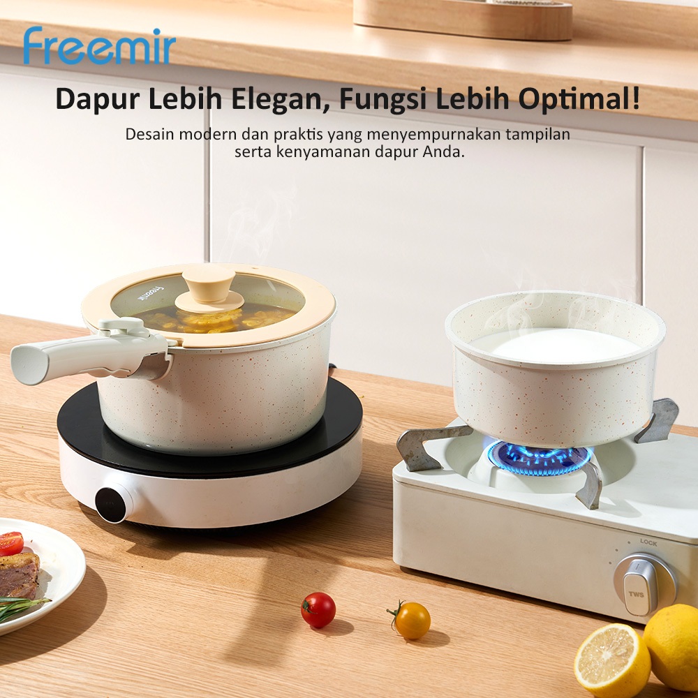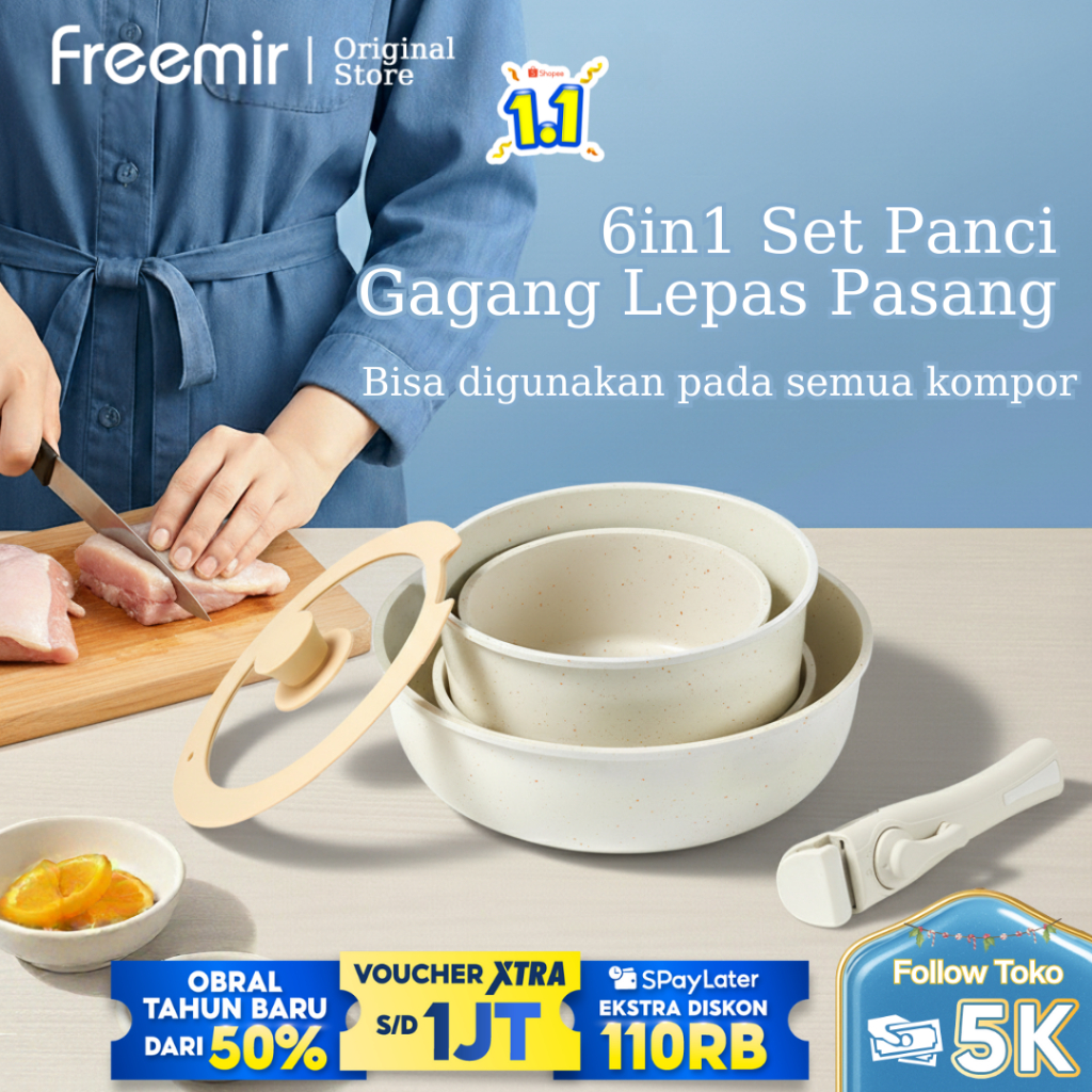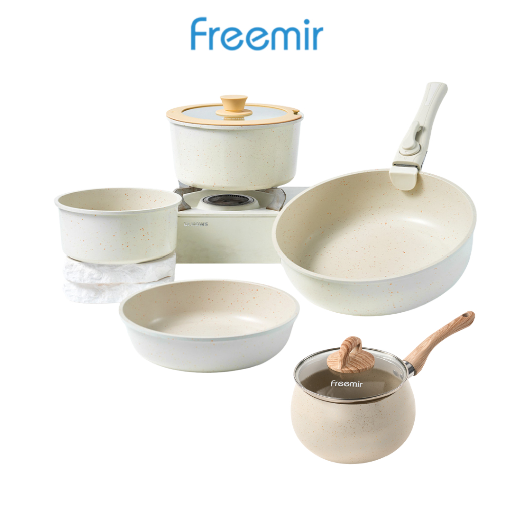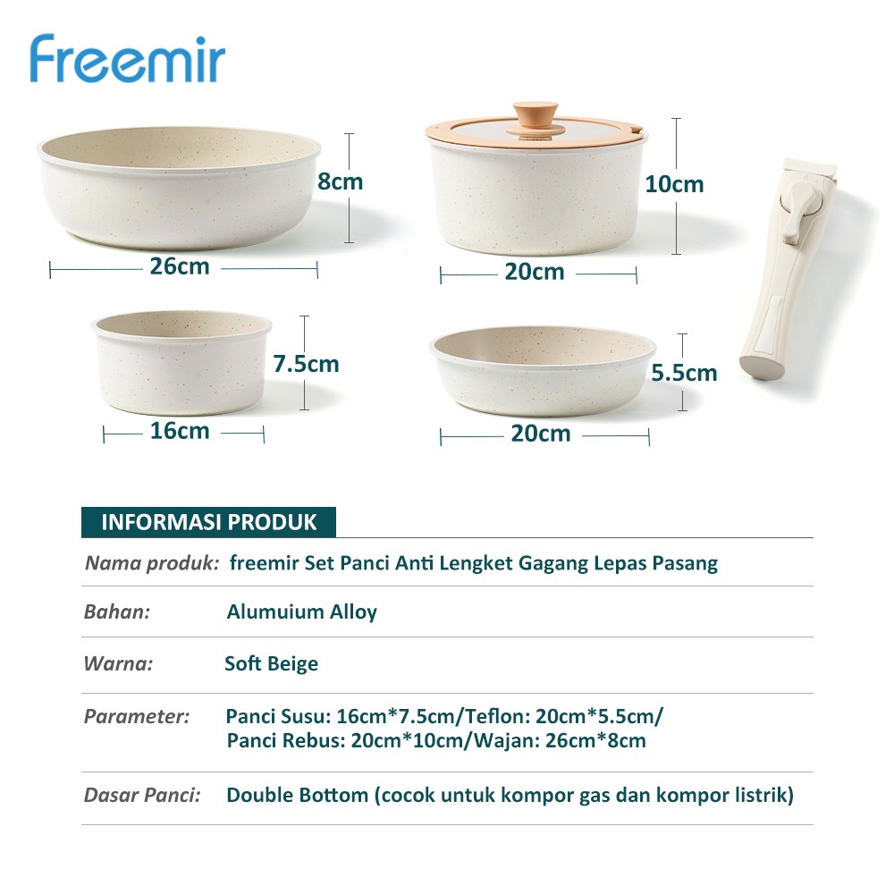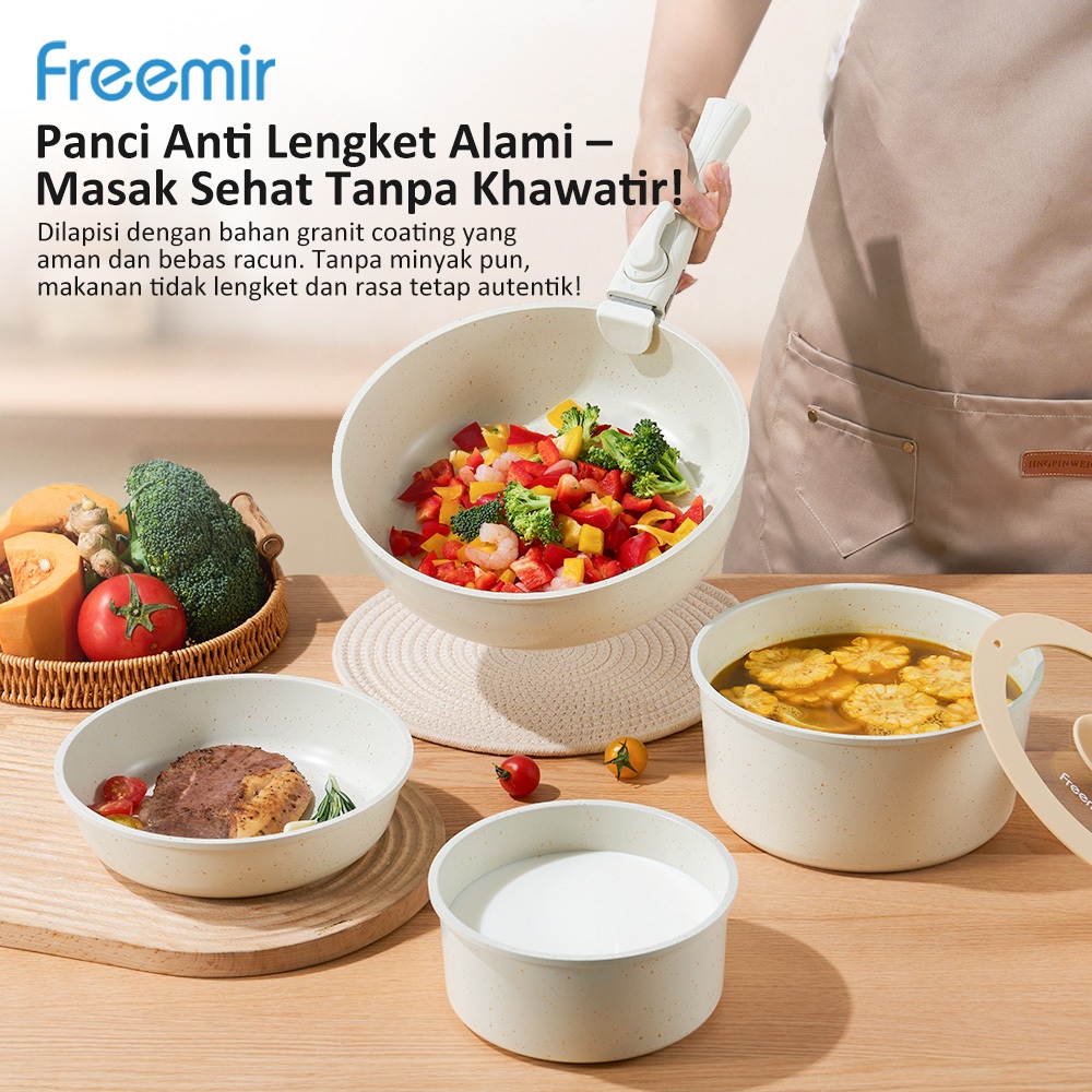 freemir original Wajan Set 6Pcs 26/20/20/16 cm Gagang Lepas Pasang Granit Coating Anti Lengket