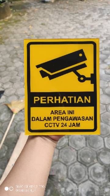 Papan Peringatan CCTV, Perhatian area ini dalam pengawasan cctv 24 jam, Sign acrylic papan tanda cctv akrilik