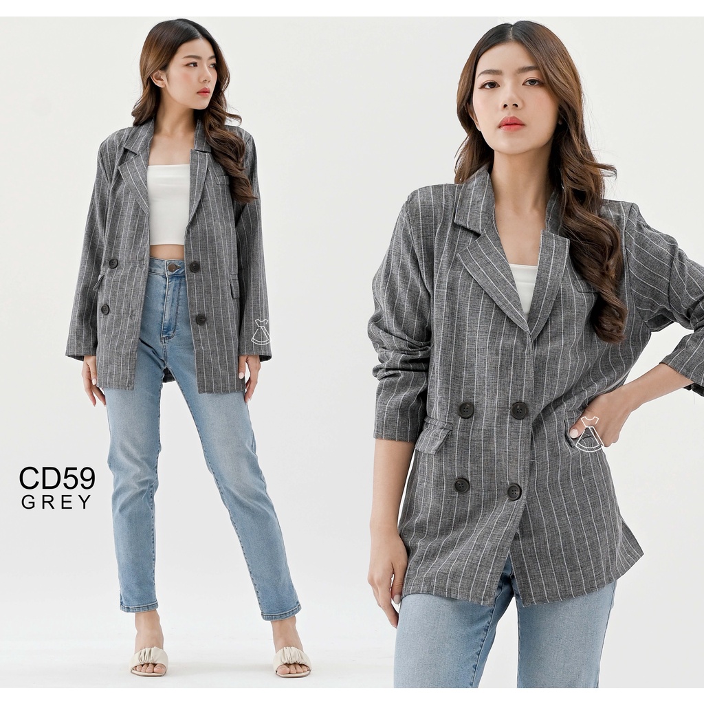 CD59 - Outer Blazer Linen Blazer Salur Casual