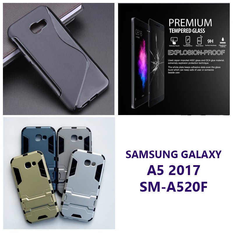 Samsung Galaxy A5 2017 SM A520F A520F/DS Case Casing Cover Tempered Glass Anti Gores Soft Hard Case